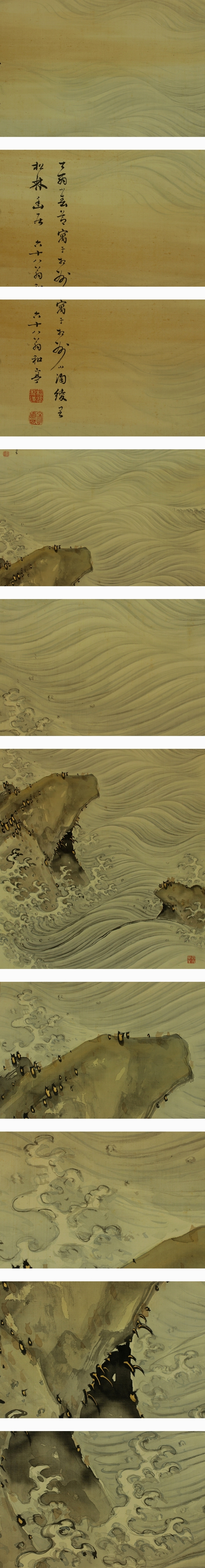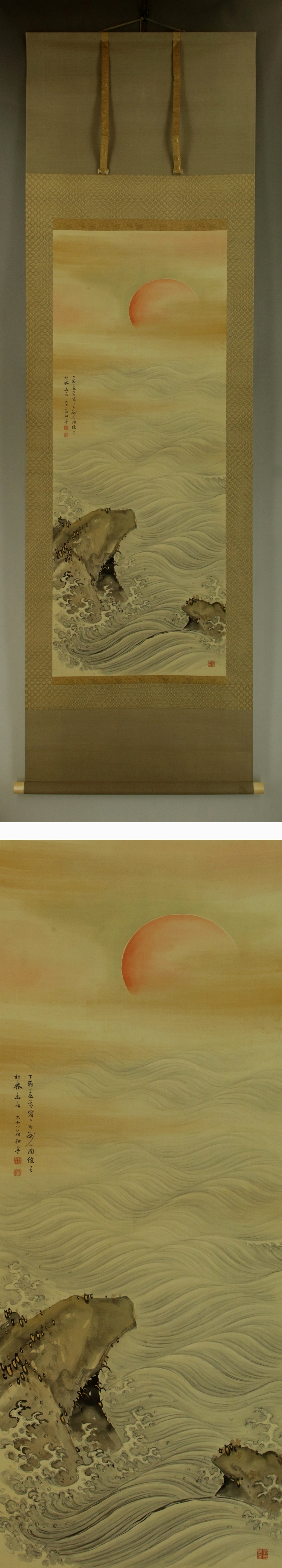 | №2502058【模写】滝和亭【波に日の出】◆絹本◆合箱◆掛軸 | |