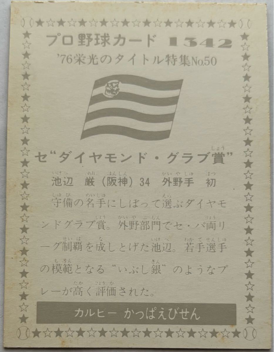 1976年 1348 池辺巌 阪神タイガース '76栄光のタイトル特集 No.50 カルビー プロ野球カード
