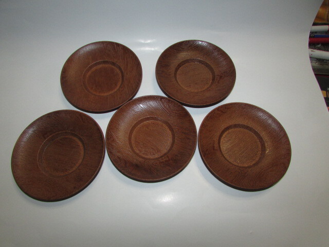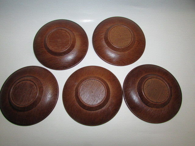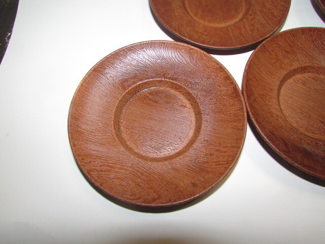 即決商品(会津若松・旧家・蔵出し)( 味わいのある木目の良い薄造りの茶托・5客・未使用 )貴重・珍品