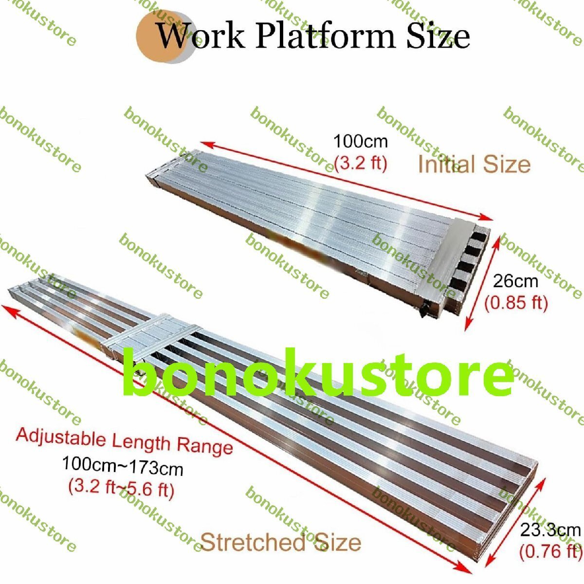 頑丈な伸縮式足場、幅260mmの滑り止め作業プラットフォームベンチ、容量330ポンド、アルミニウム拡張可能な足場板、壁塗装、天井作業用