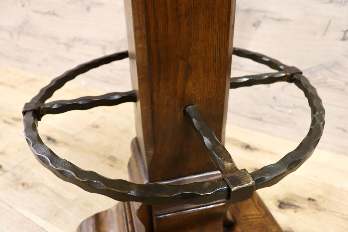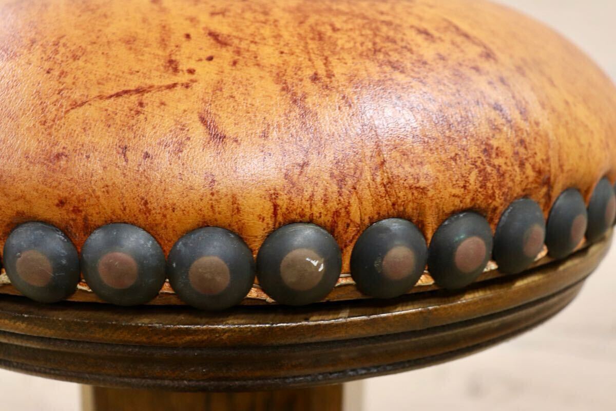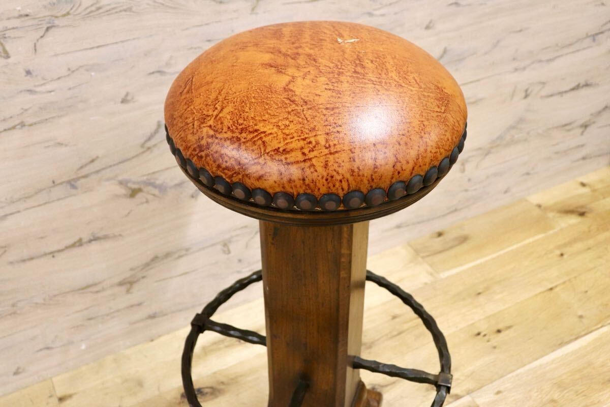 鋲打ちや木彫刻の装飾など、細部にわたり美しいディテールを備えたクラシカルなデザインが魅力的なバースツール。年代物ならではの心地よい温もり、古びた風合いが素朴で優しい雰囲気を演出します。スペイン家具ならではの重厚な佇まいと相まって大変存在感のある一脚です。
