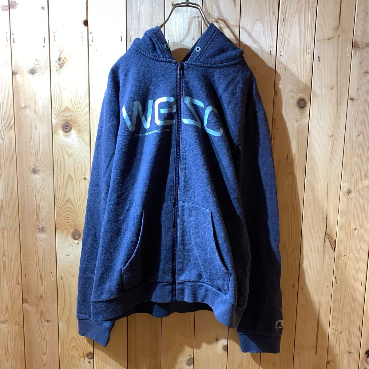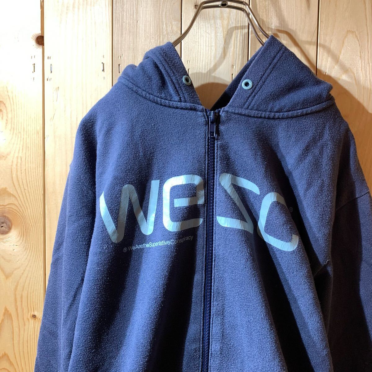 [YUK244]WeSC ウィーエスシー ジップパーカー スウェット パーカー 紺 ネイビー M ロゴ