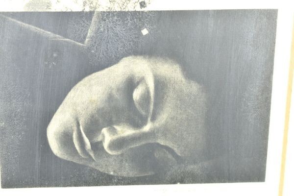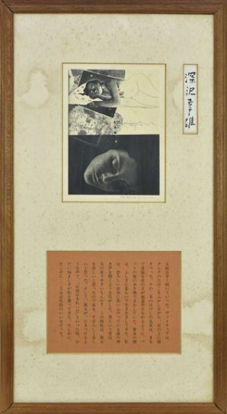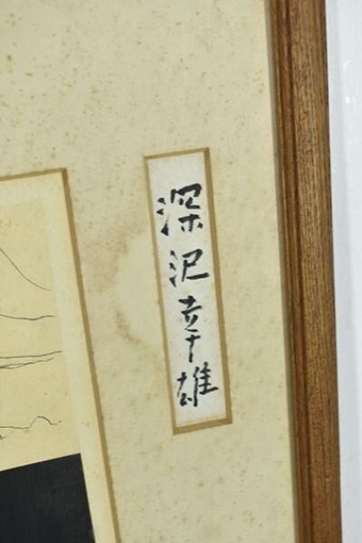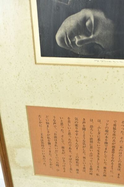 深沢幸雄版画額「黒い花 太陽は早く・・・」 銅版画 サイン 24.5×18 F:81.5×44.7 Yukio Fukazawa
