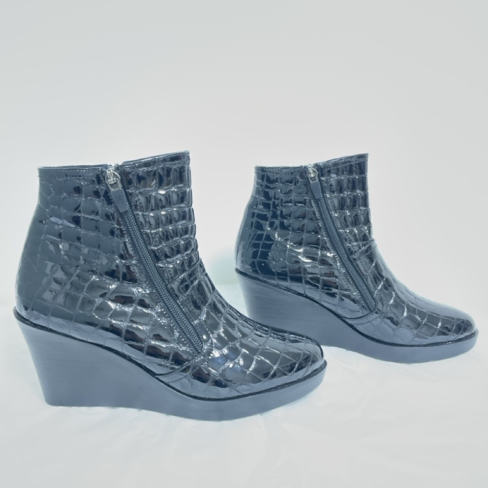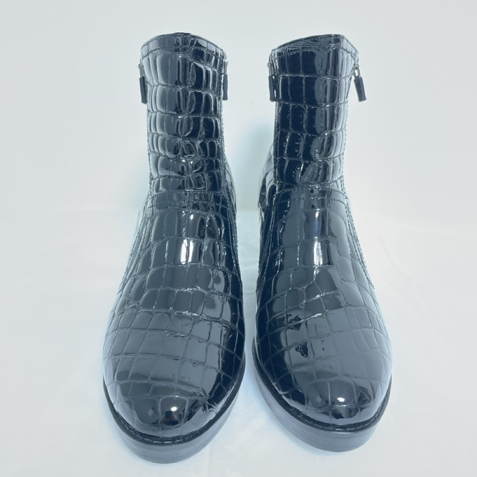 | 商品名 | ショートブーツ レザー 型押し加工 エナメル ファスナー 24.0cm |