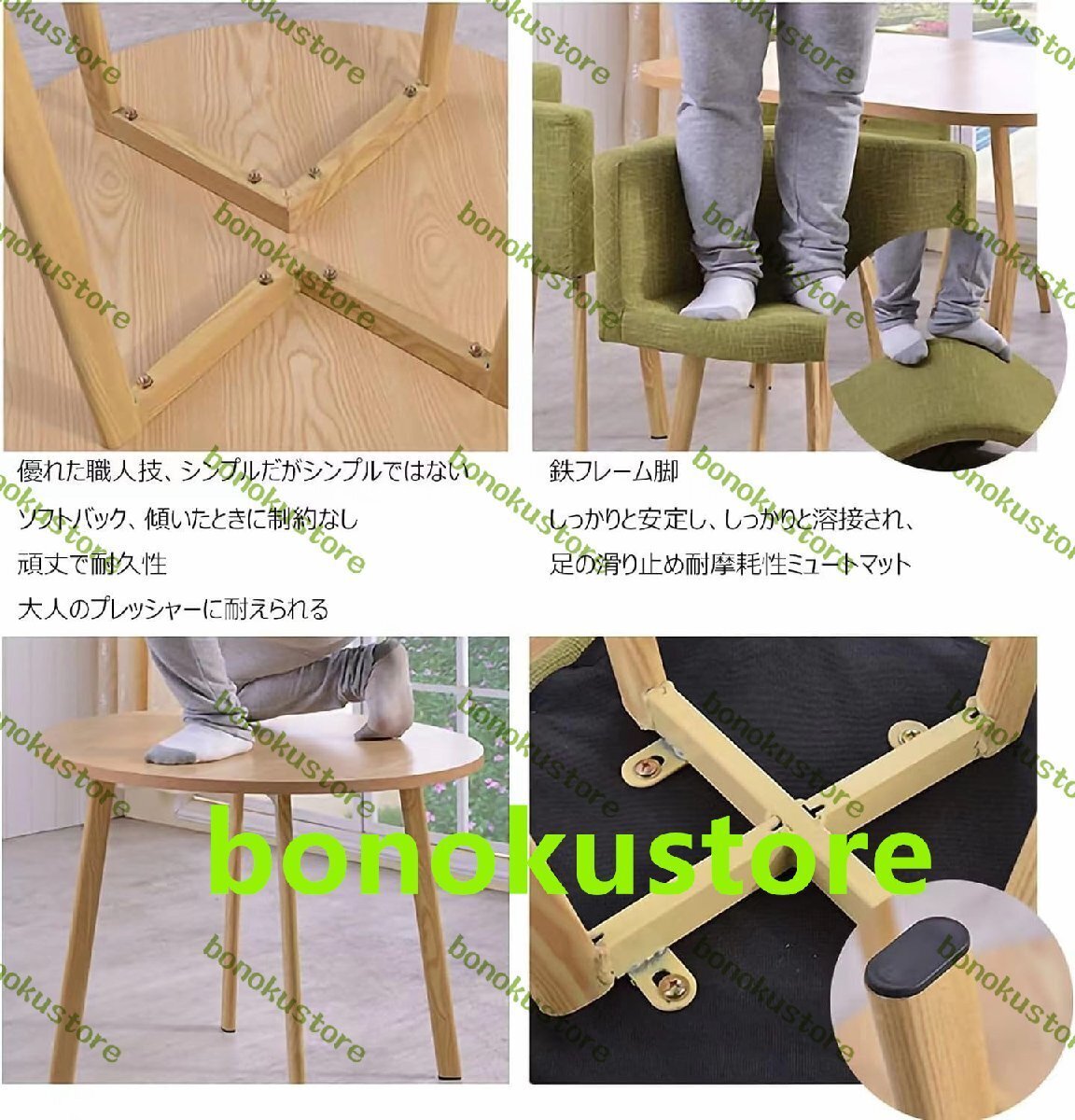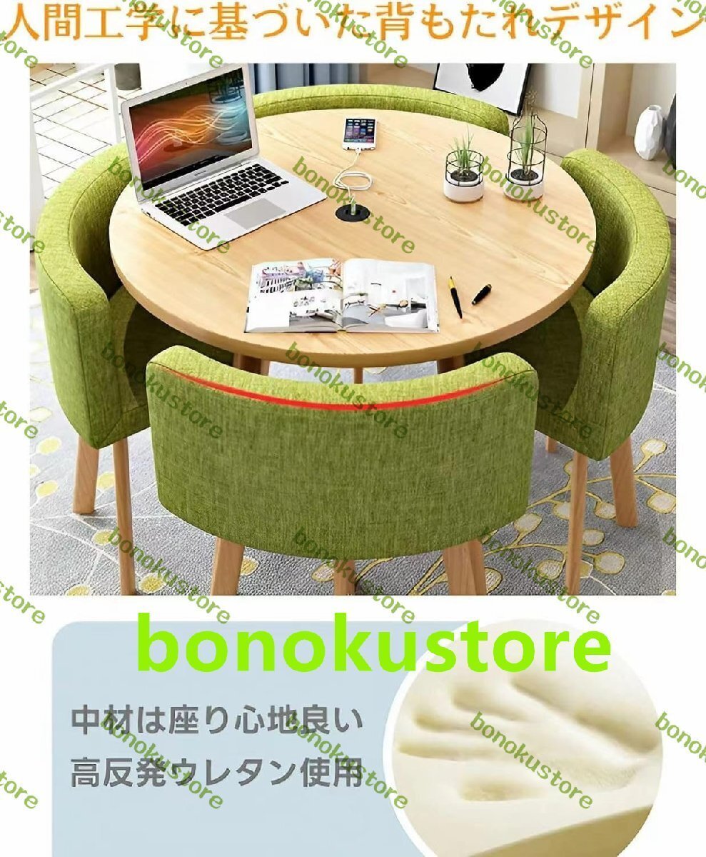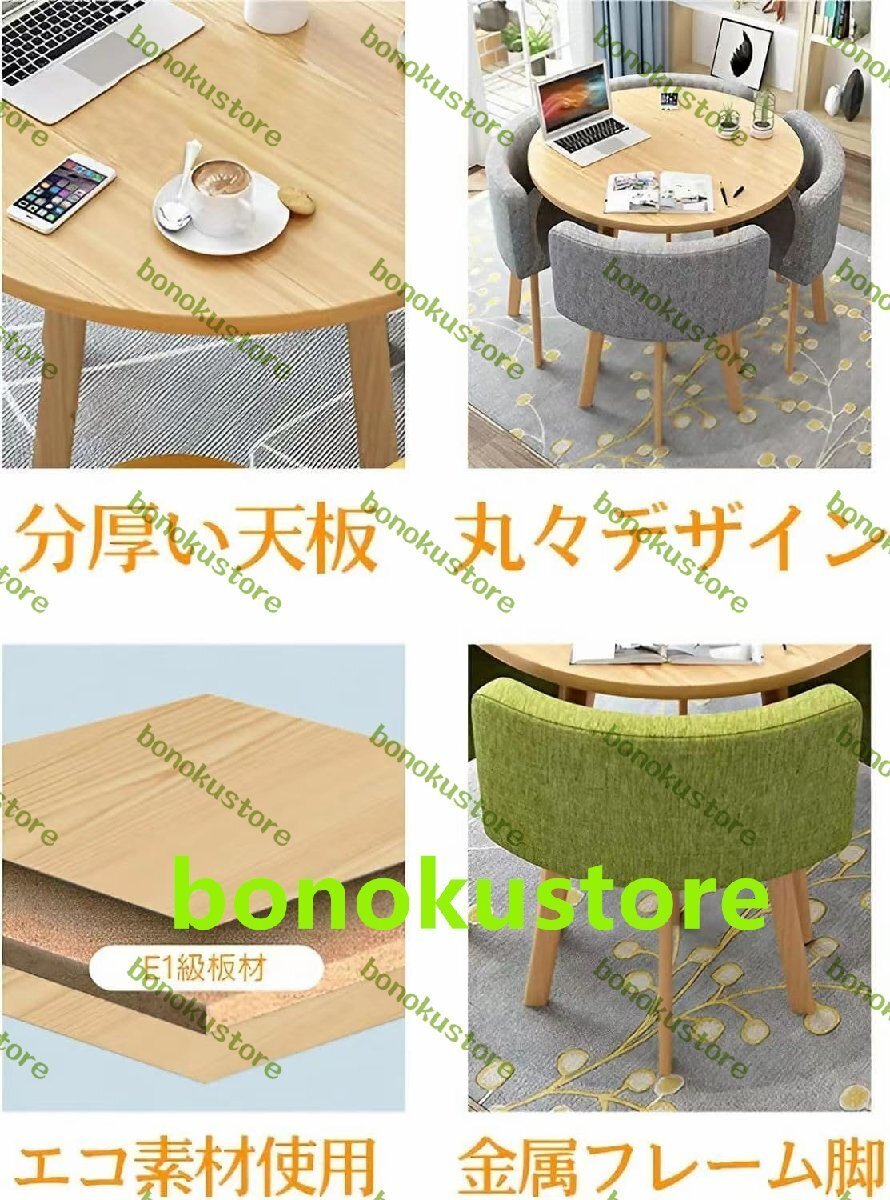 ダイニングセット カフェーテーブル 4人用 円形 食卓セット ダイニングテーブル+椅子 5点セット 4人掛け テーブル1点 綿麻 80cm