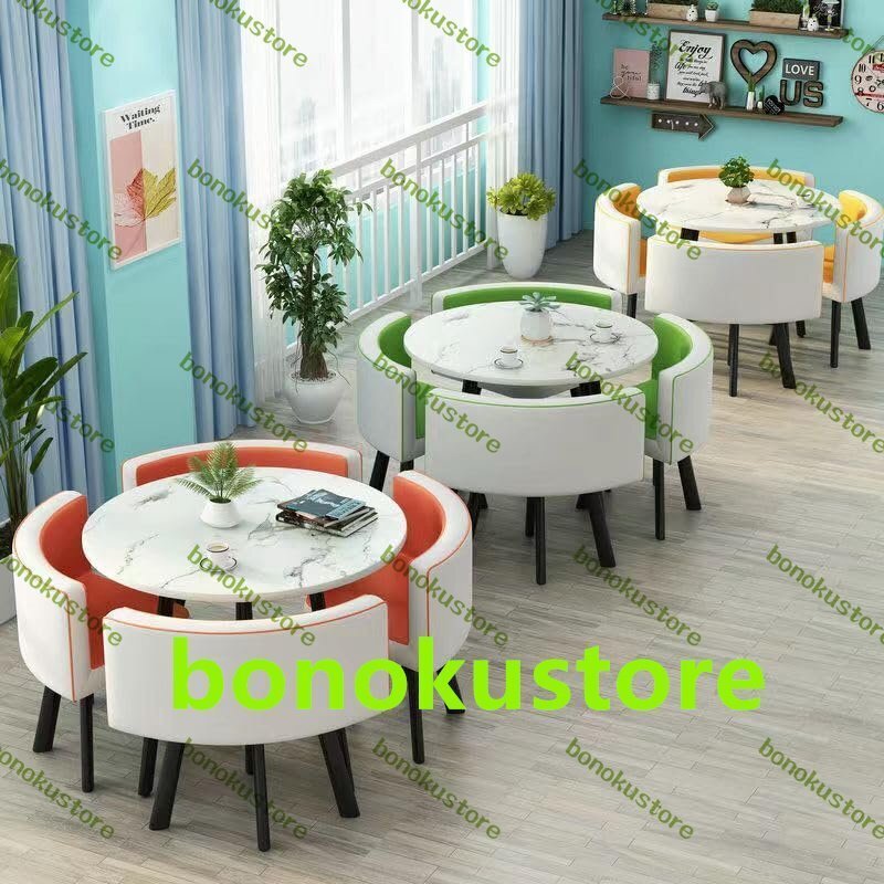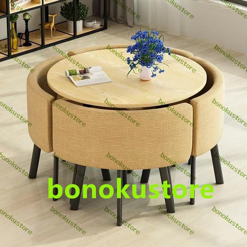 ダイニングセット カフェーテーブル 4人用 円形 食卓セット ダイニングテーブル+椅子 5点セット 4人掛け テーブル1点 チェア4脚 省スペース 丸型 会議テーブル オフィス リビング ベランダ 待合室 喫茶店 ホテル適用 (綿麻6 90cm)