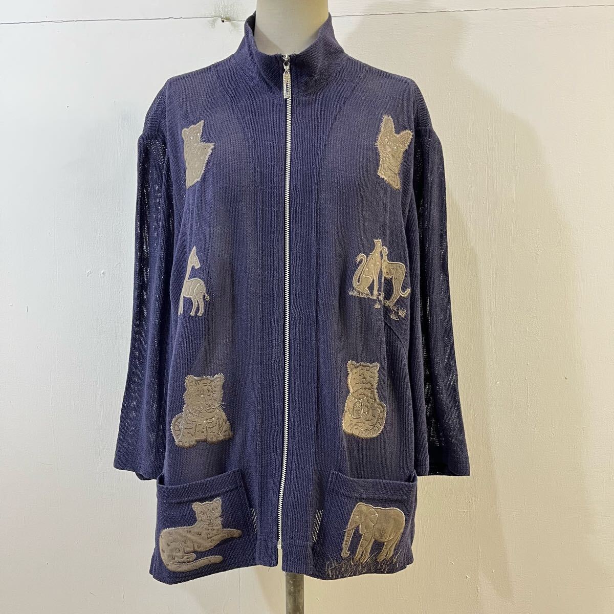 伊太利屋 リネンジャケット ジップアップジャケット ブルゾン アニマル刺繍 ハイネック イタリヤ GKITALIYA【レターパックプラス郵送可】Qの出品です。
