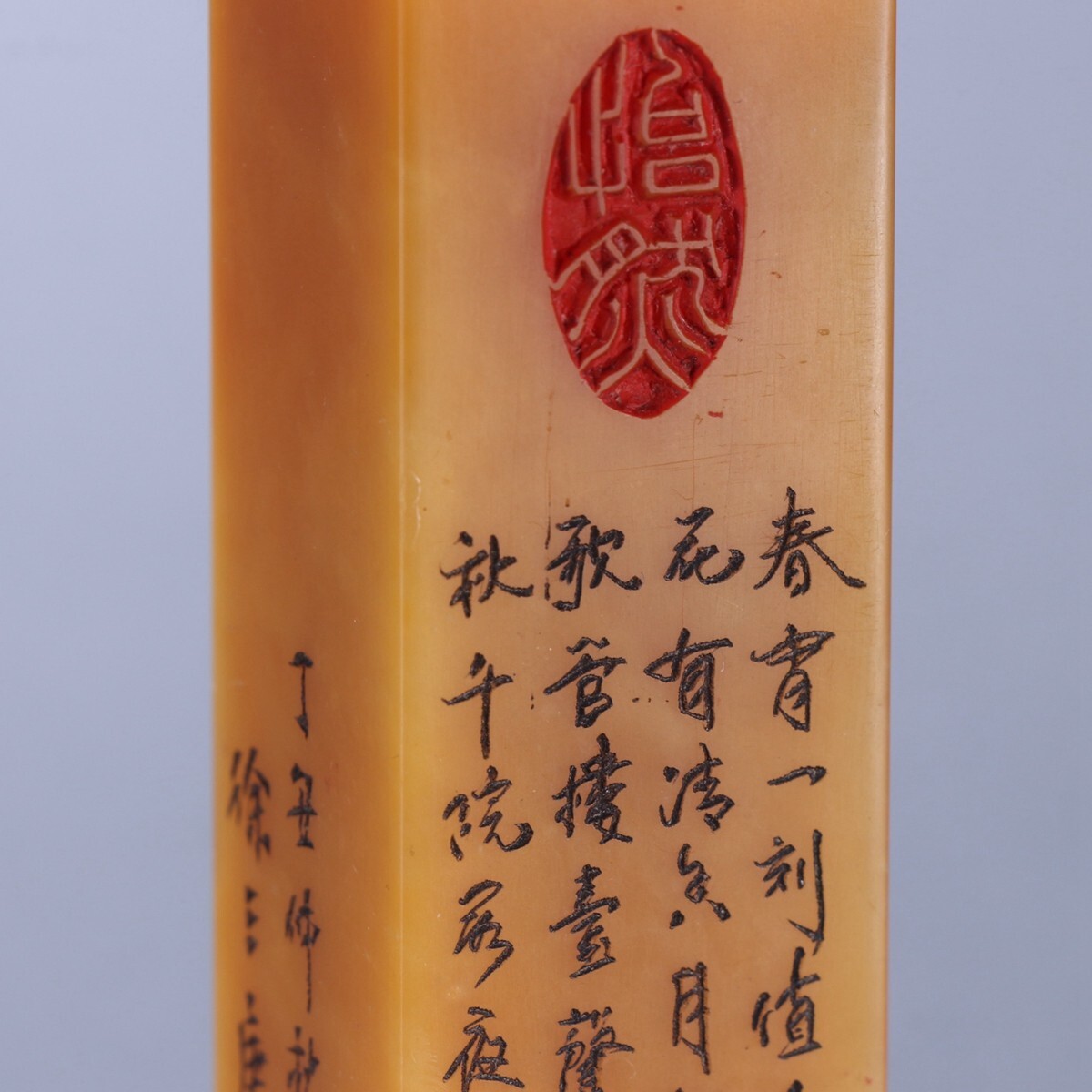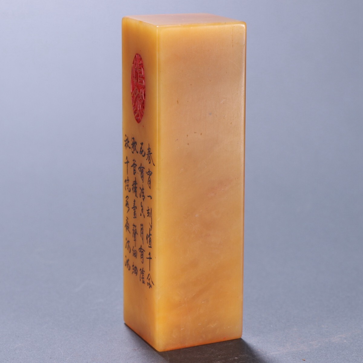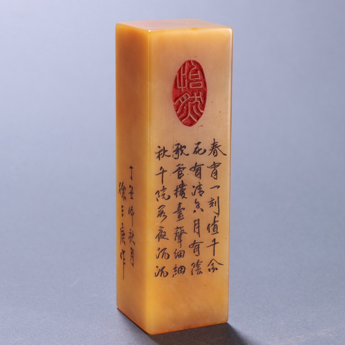 清代 徐三庚作 老寿山石 田黄石彫 詩文四方印章【仁】極細工 手彫り 中国古賞物 古美術 蔵出
