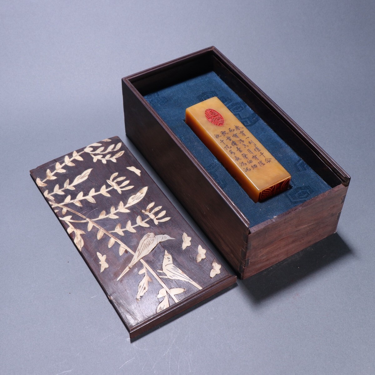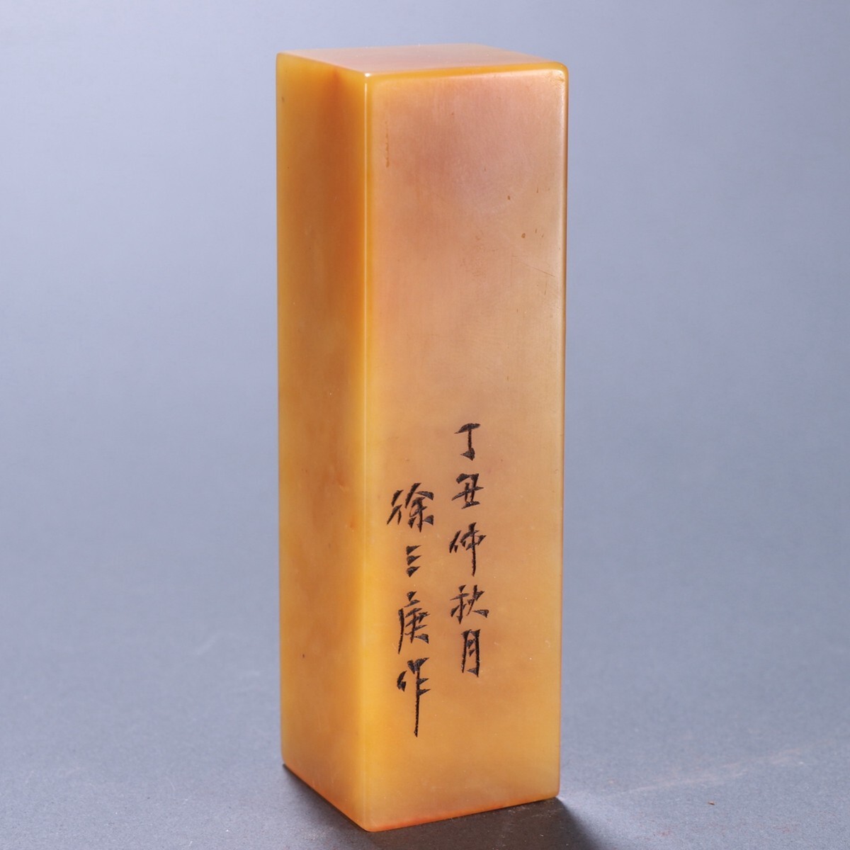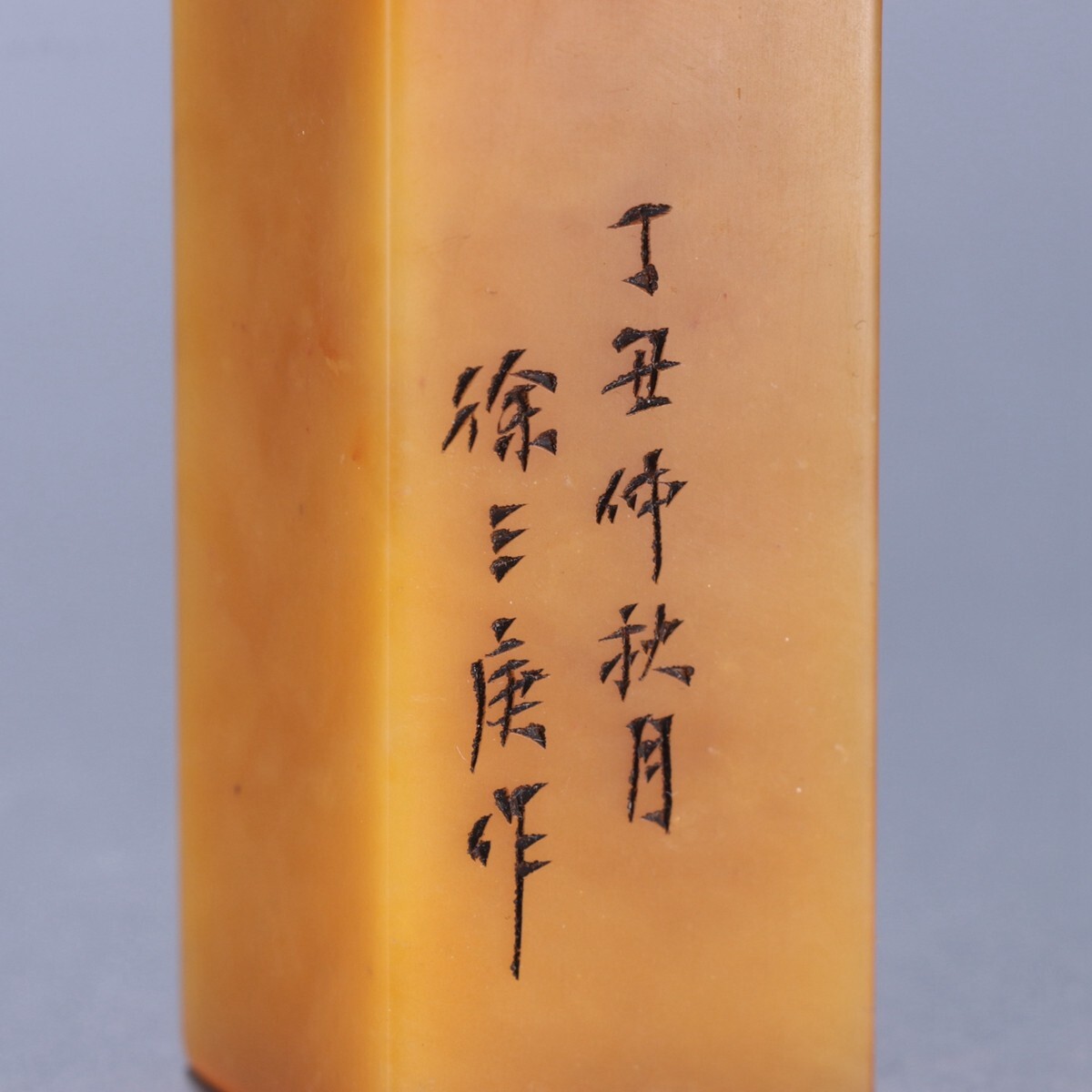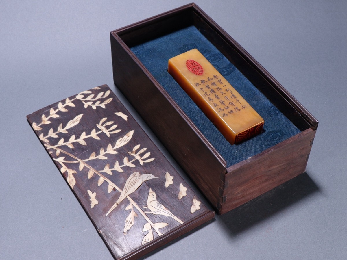 清代 徐三庚作 老寿山石 田黄石彫 詩文四方印章【仁】極細工 手彫り 中国古賞物 古美術 蔵出