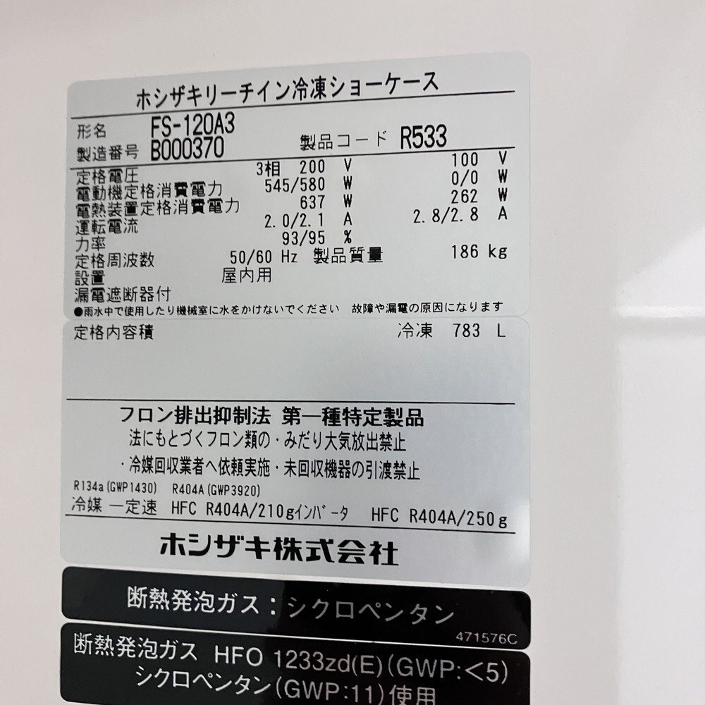 | 消費電力 | (単相)冷却時:279/279・霜取時:279/279 (三相)冷却時:611/646・霜取時:637/637W |