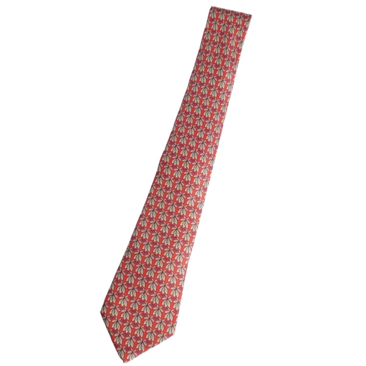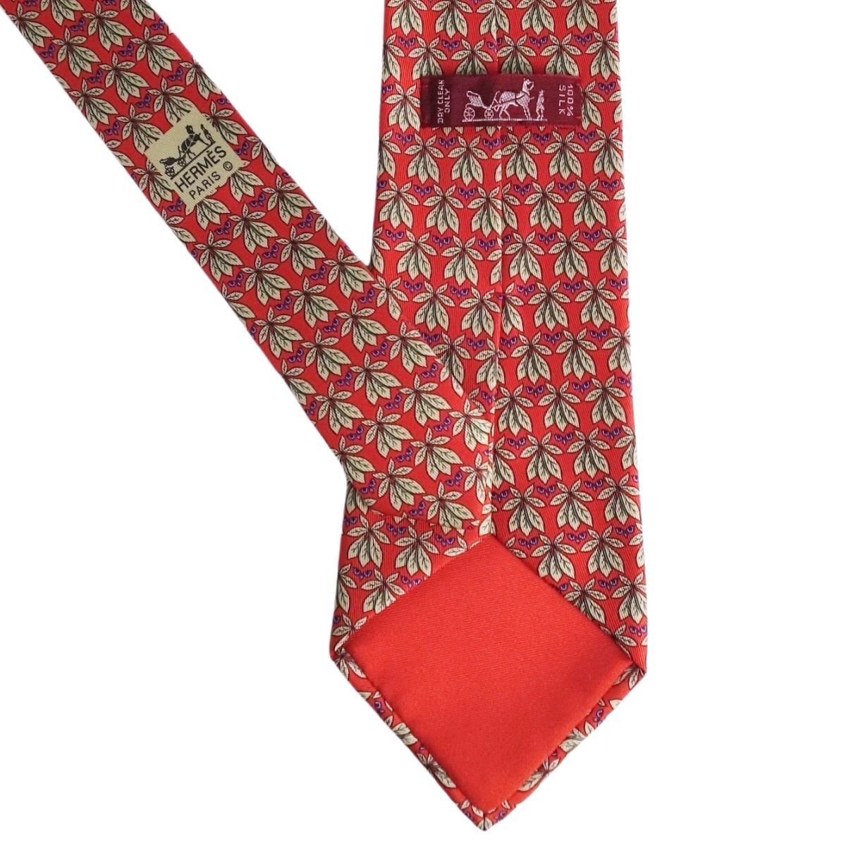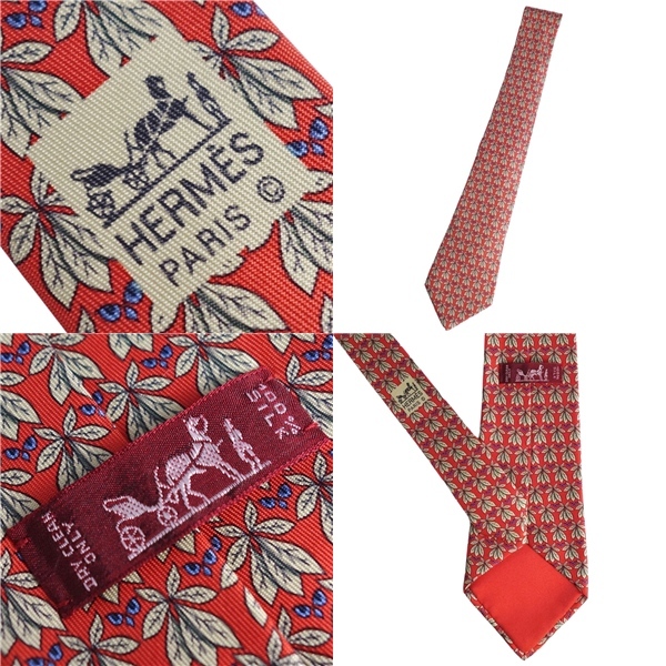 | 美品 エルメス HERMES ネクタイ 総柄 シルク メンズ フランス製 オレンジ |