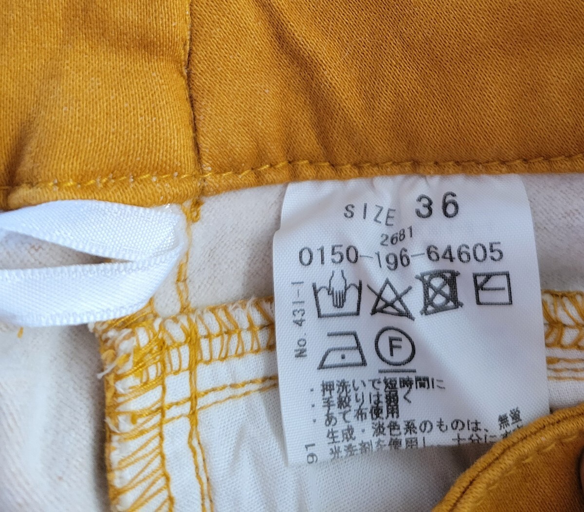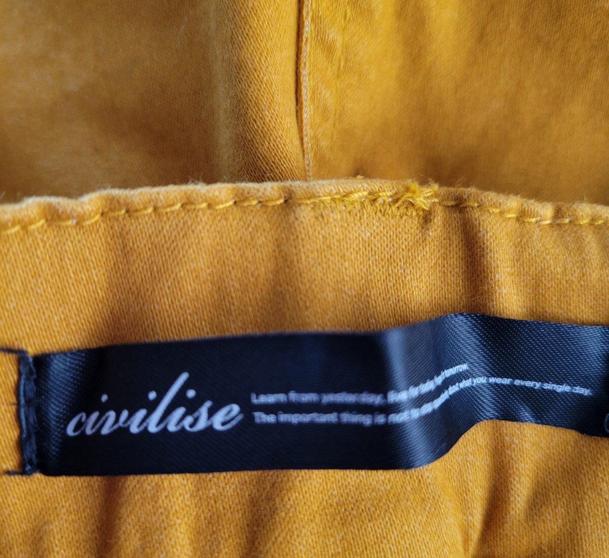 イグルスcivilise裏起毛ストレッチパンツ マスタードです。状態は良好です。サイズ(36)ウエストゴム66 股下62 ワタリ24 裾幅15cm