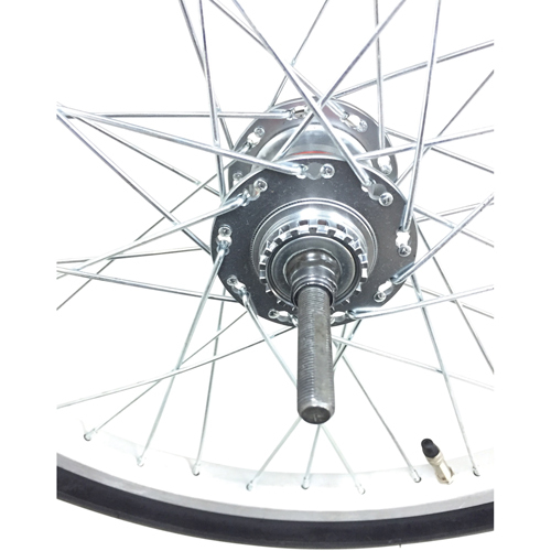 仕様:アルミ ハブ軸長さ:181.8mm スポーク:14番 ニップル:14番 スポーク穴数:36穴 引っ掛けスポーク オーバーロックナット寸法:120mm ハブ軸のネジ径:BC 3/8 適合ナット径:15mm