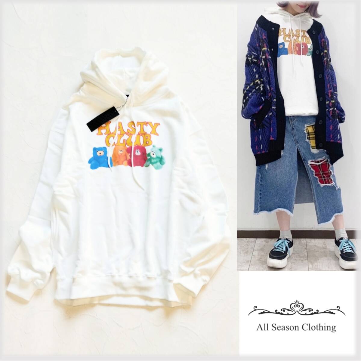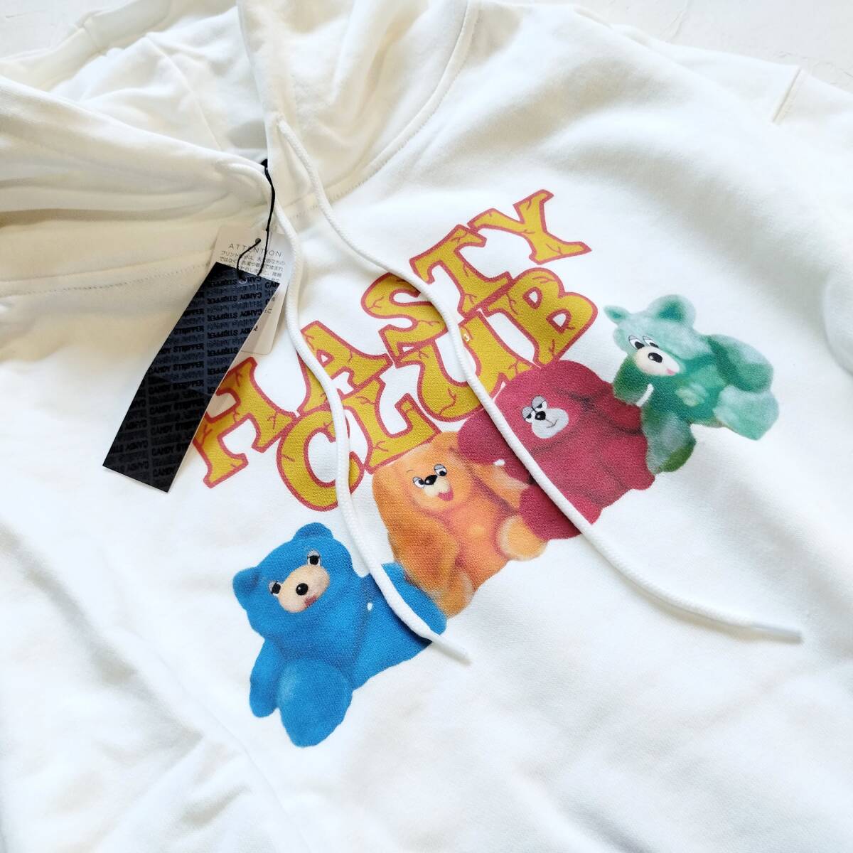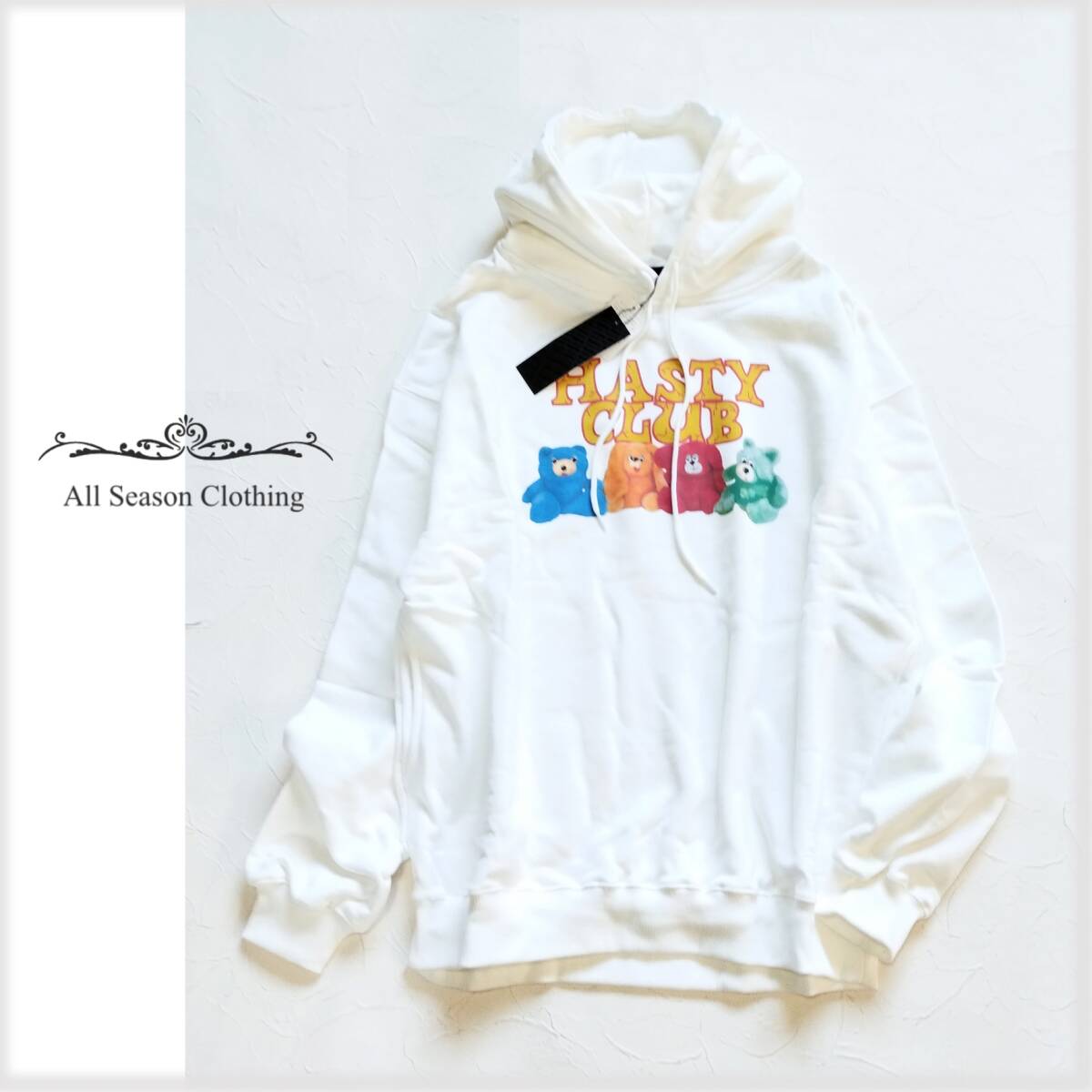 キャンディストリッパー HASTY CLUB SWEAT HOODIE 定価:¥11,000 + TAX カラフルなぬいぐるみプリントが可愛いスウェットフーディです♪(* ´ ∇ ` * ) メンズの方もサイズが合えばOKかと…☆(* ´ ∇ ` * ) HYSTERIC GLAMOUR、X-girl など お好きな方にもおすすめです。 程よい肉感のコットン100%の裏毛素材を使用していて、 お肌にも優しく、シーズンレスでご着用いただけます。 ゆるっとしたシルエットでストリートにも着こなせるサイズ感です♪ ◇ コンディション 紙タグ付き、未使用の美品です♪ ※ 個人保管品ですので、ご理解ある方のみお願い致します。 ◇ カラー ・・・ オフホワイト系 ※変色のように見える箇所は光の加減です。 ◇ 素 材 ・・・ 画像の品質表示ラベルでご確認下さい。 ◇ 裏 地 ・・・ なし ◇ 仕 様 ・・・ 多少の伸縮性あり。 ◇ 公式サイズ ・・・ 2 ほぼフリーサイズかと…☆ ◇ 平置き実寸はおよそ下記の通りです。(センチ単位) 肩幅:61 身幅:58 着丈:67 袖丈:57 ☆ コーデに使用した他アイテム・アクセサリー類は付属しません…☆ *^^* ☆ 個人保管品ですので小さな見落としの際にはご容赦下さい。 「そんなの、全然いいさ♪」というおおらかな方のみ、ご入札をお願い致します…☆ 。。。。。。。。。。。。。。。。。。。。。。。。。。。。。。。。。。。。。。。。。。。。。。。。。。。。。。 ★ その他、洋服・クツ・雑貨 など よろず出品中。 ほとんどのお品は、同梱可能です♪ どうぞお越しくださいませ…☆