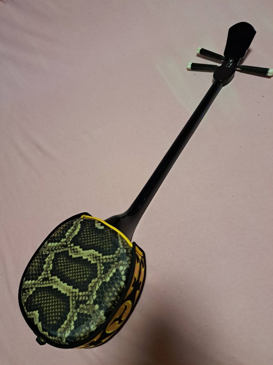 三線三味線 蛇味線 人工ヘビ皮 木製 沖縄USED