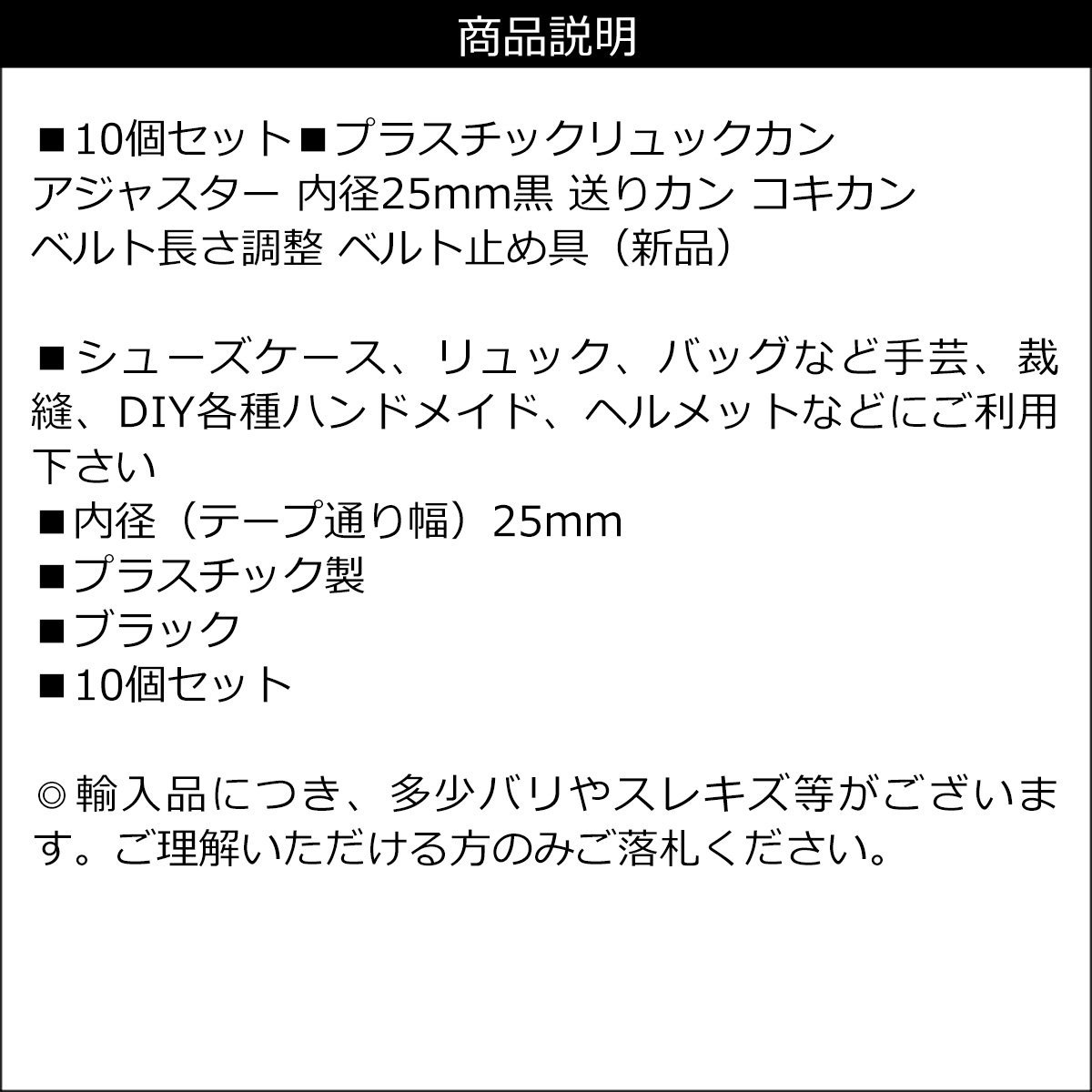 リュックカン 10個セット プラスチック アジャスター 内径25mm 黒 送りカン コキカン ベルト長さ調整 ベルト止め具 メール便 送料無料/10П