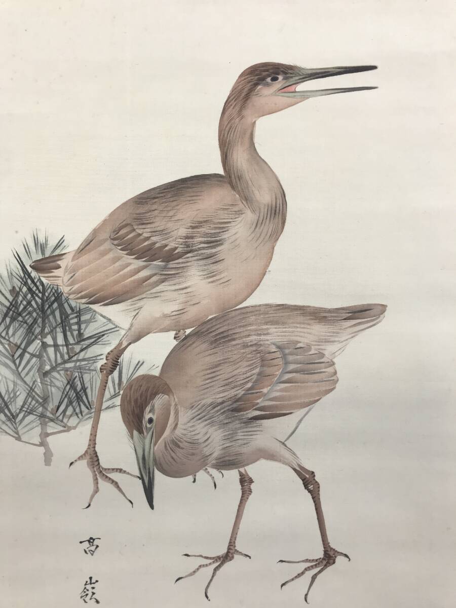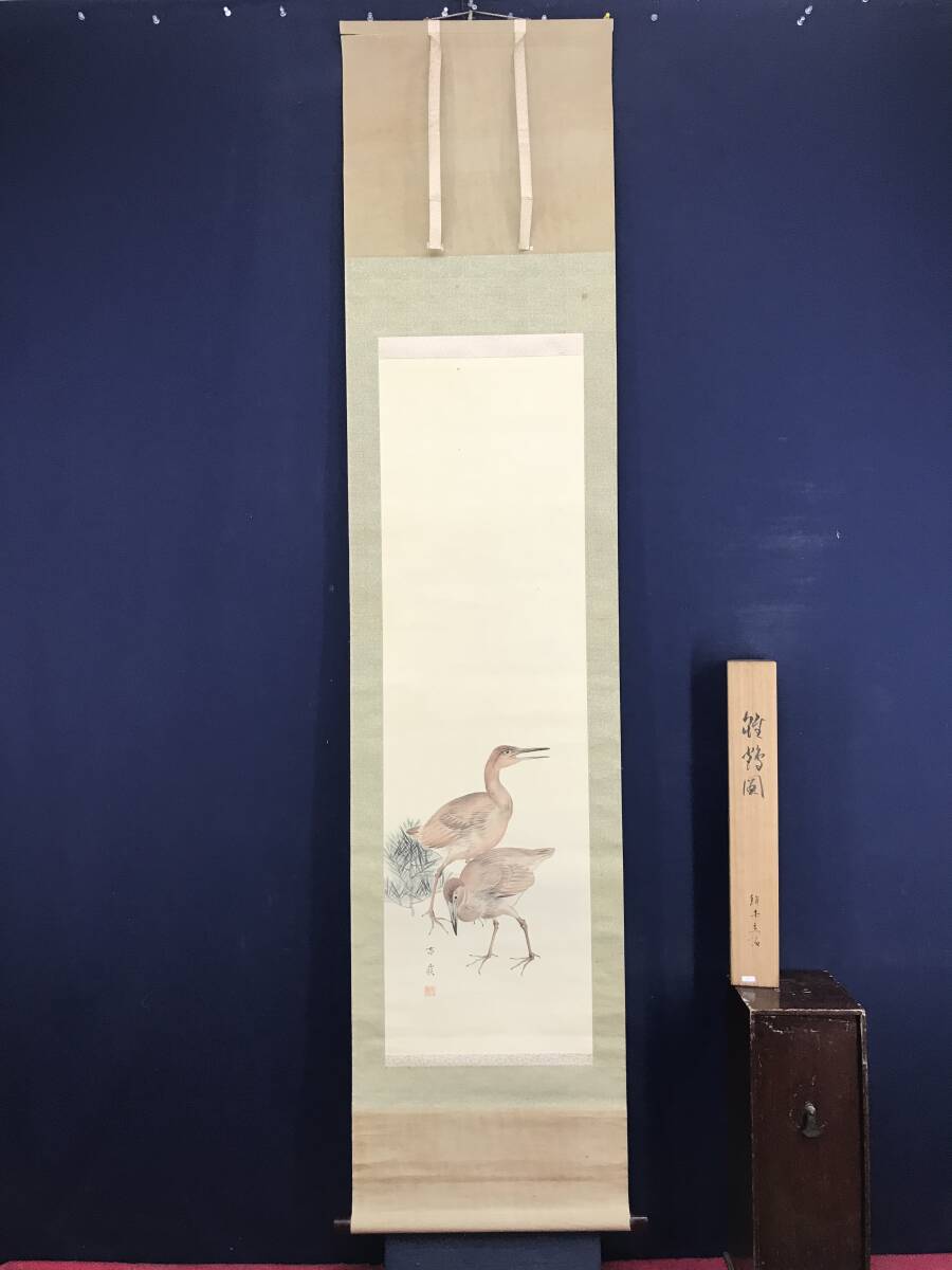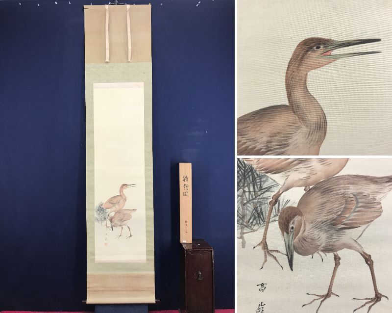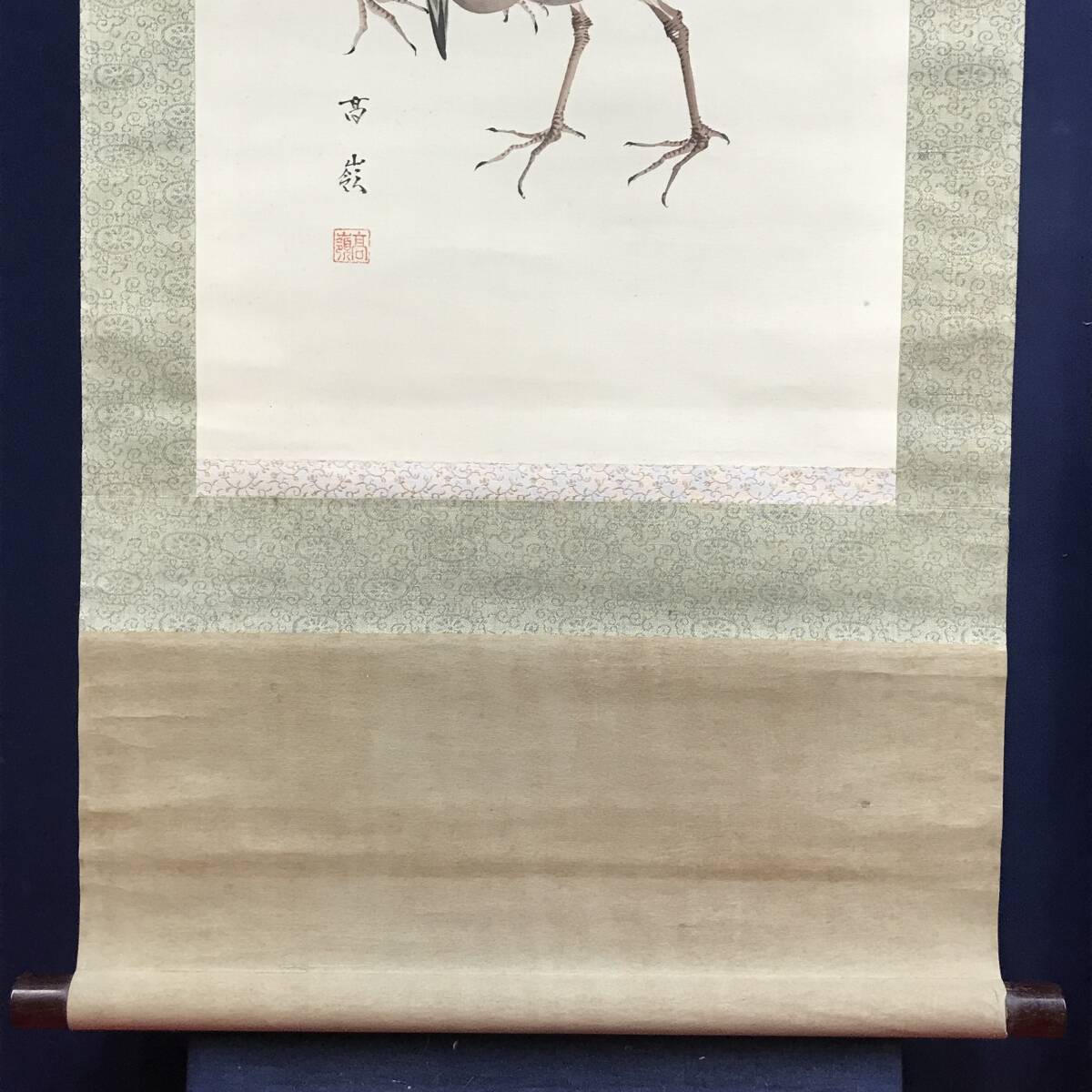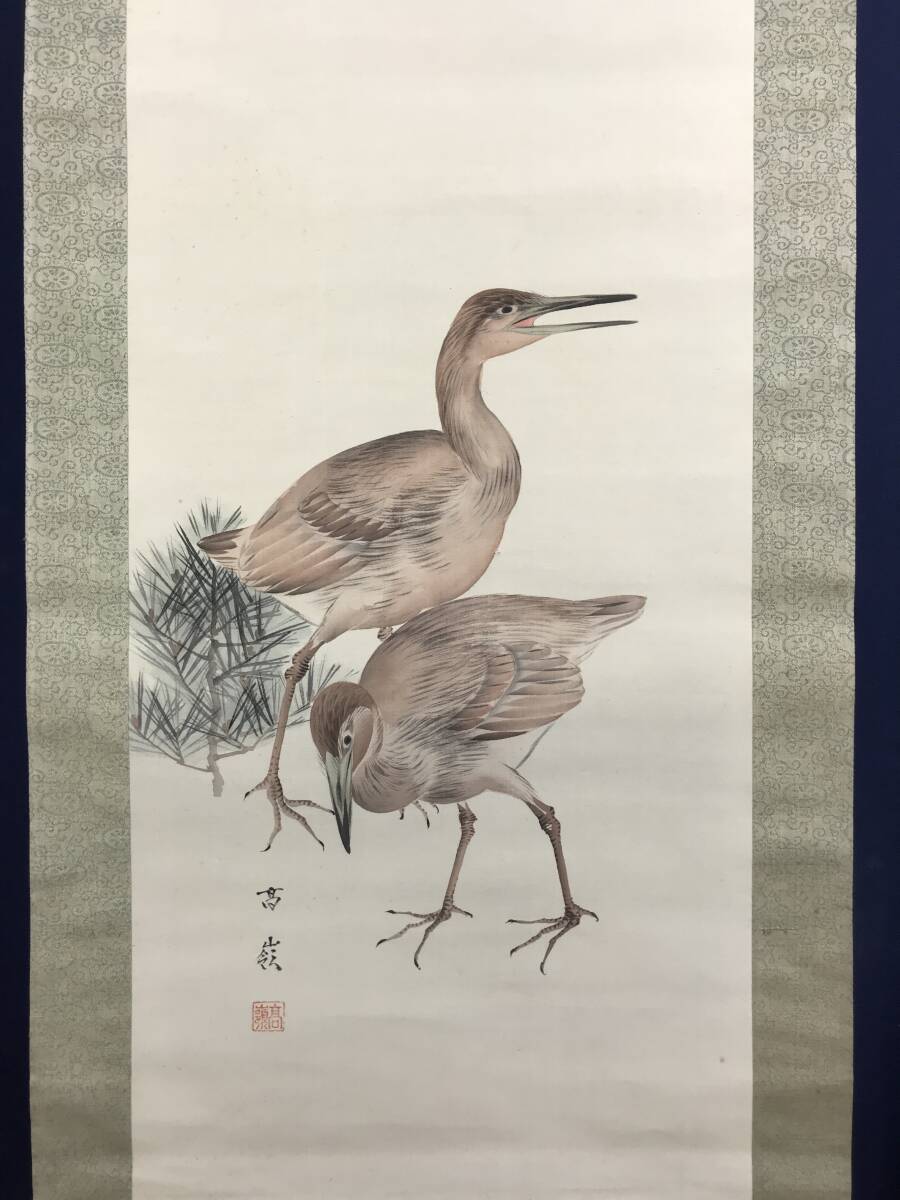 真作/吉田高嶺/舞鶴図/ヒナ鶴図/若松にツル図/祝掛軸/正月掛軸/花鳥図/掛軸☆宝船☆AI-988