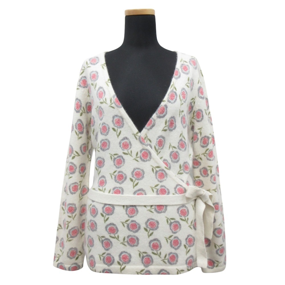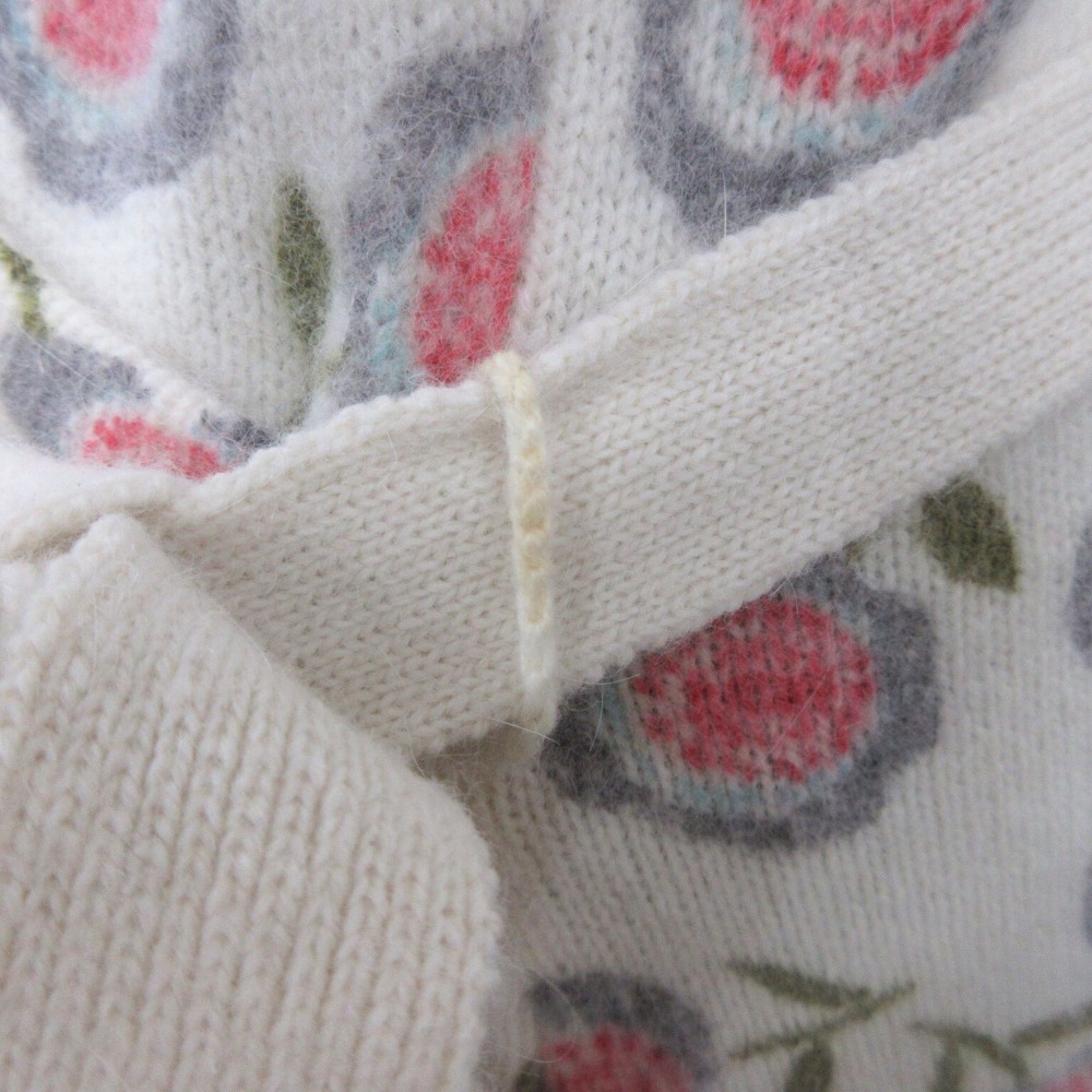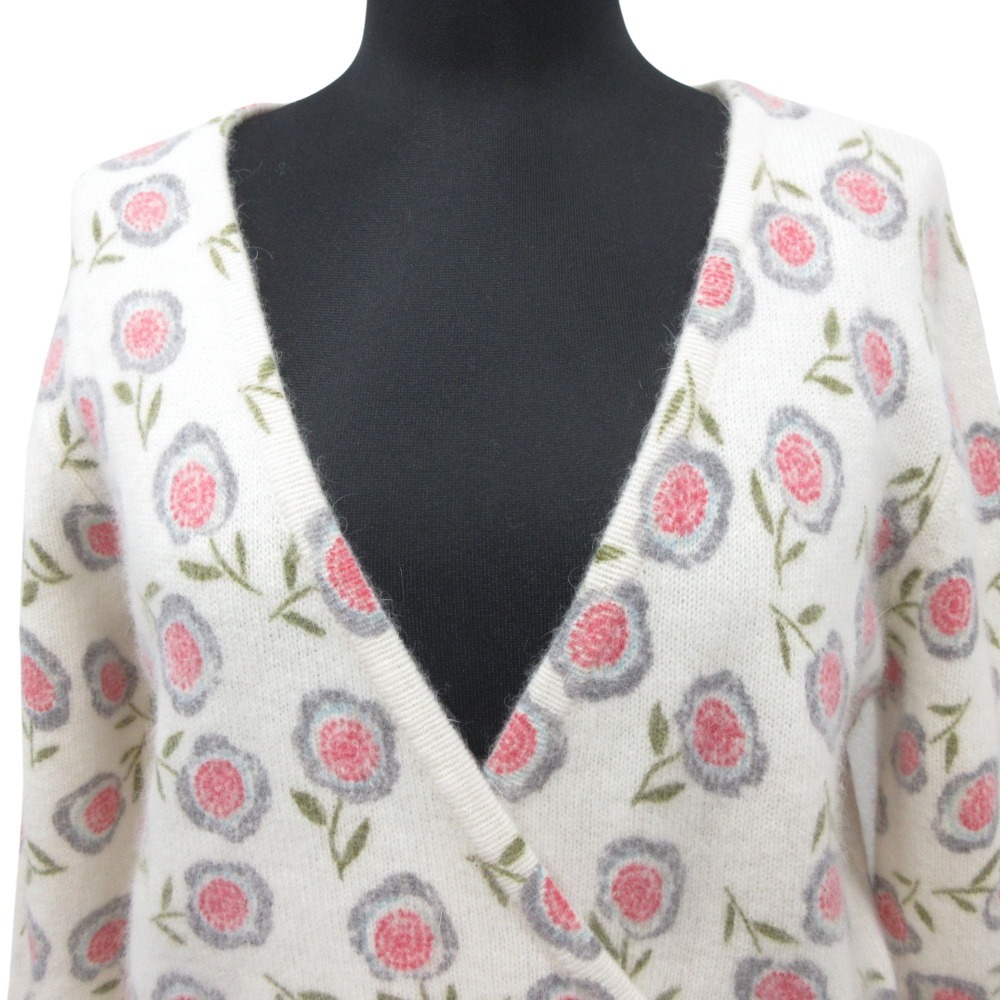 商品名:LAURA ASHLEY ローラアシュレイ ウール アンゴラ ニット セーター カシュクール風 花柄 サイズS 白 ホワイト ピンク
