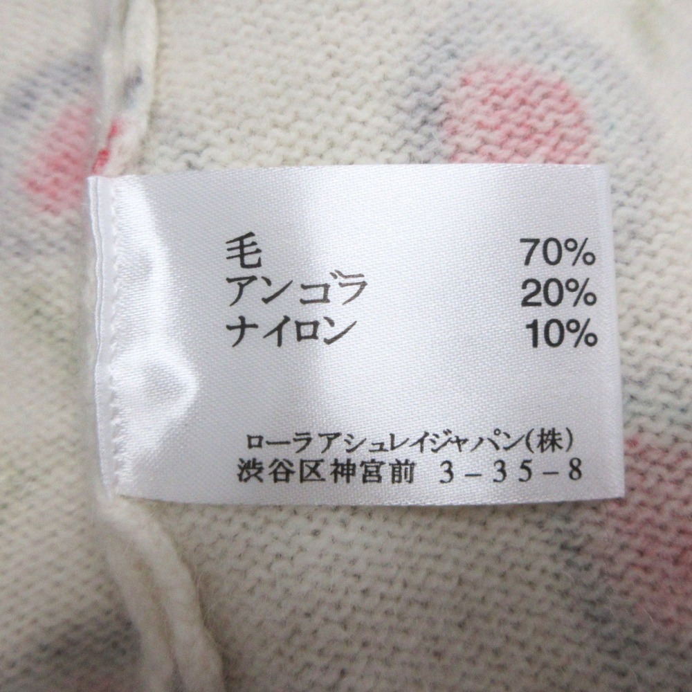 美品 LAURA ASHLEY ローラアシュレイ ウール アンゴラ ニット セーター カシュクール風 花柄 サイズS 白 ホワイト ピンク