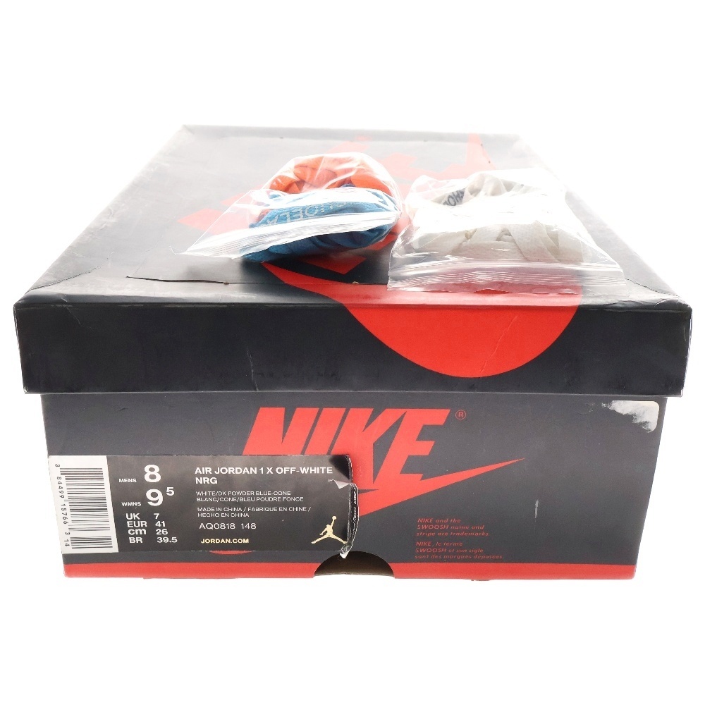 品名×OFF-WHITE AIR JORDAN 1 POWDER BLUE UNC AQ0818-148 オフホワイト エアジョーダン1 パウダーブルー ハイカットスニーカー ホワイト/ブルー US8/26.0cm