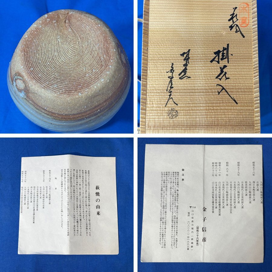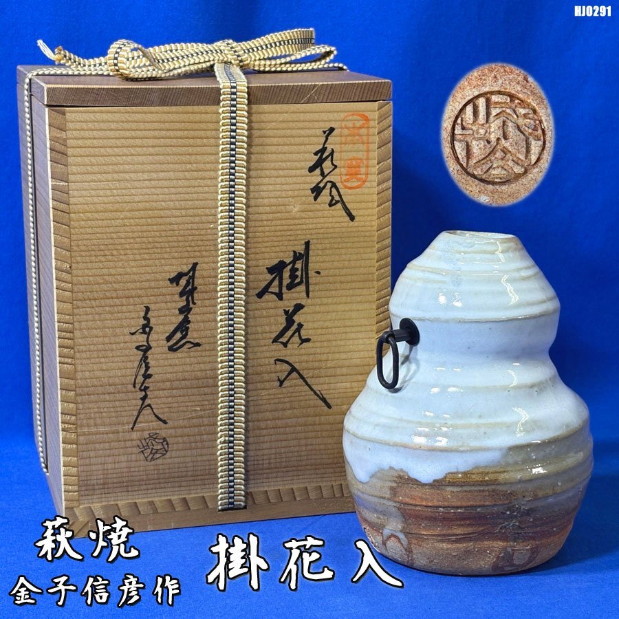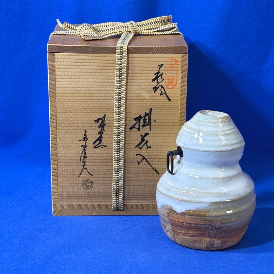 萩焼 掛花入 城山窯 金子信彦作 壁掛け 茶道具 共箱 骨董 古美術 アンティーク インテリア ◇HJ-0291