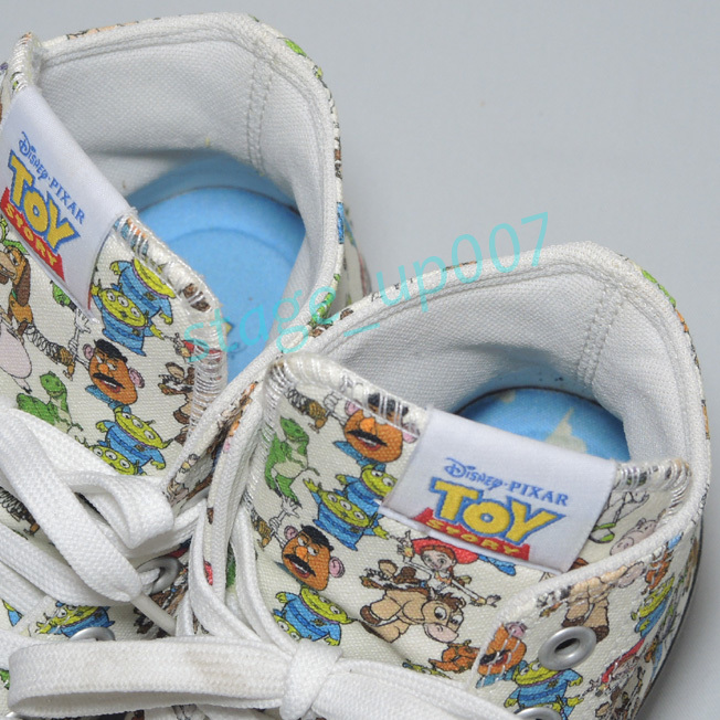 | 主な特長・仕様 | Disney ピクサー映画“トイ・ストーリー”のキャラクターをアッパー全面にプリントしたポップなオ ールスター。タンに付いた『TOY STORY』ロゴの織ネームや、ライニングにプリントした『ANDY』 の文字、アンディの部屋の雲柄をプリントした左足インナーソールなど、トイ・ストーリーの世界観 が凝縮した一足。 ●品番:1CL050 ●サイズ:US5/24cm ●品質:アッパー キャンバス/アウトソール ラバー ●カラー:マルチ※撮影や閲覧環境により実物のカラーと多少異なる場合があります。 |