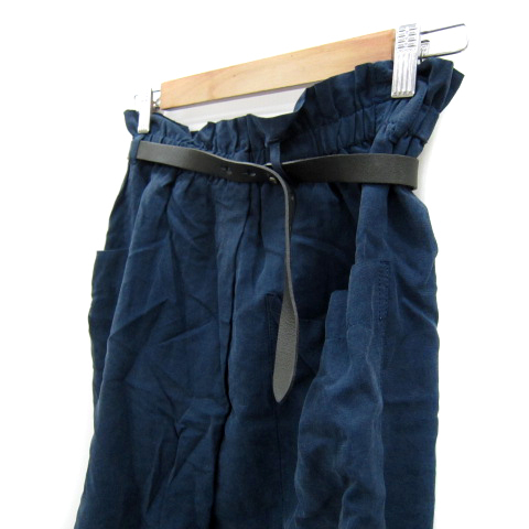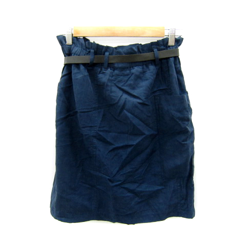 マカフィー MACPHEE トゥモローランド フレアスカート ひざ丈 無地 ベルト付き リネン混 麻 38 M 紺 ネイビー /SY18 レディース