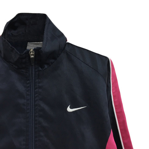 ナイキ NIKE ジャケット ジャンパー スポーツウェア スタンドカラー ライン ロゴ 長袖 130 (XS) 紺 ピンク ネイビー キッズ