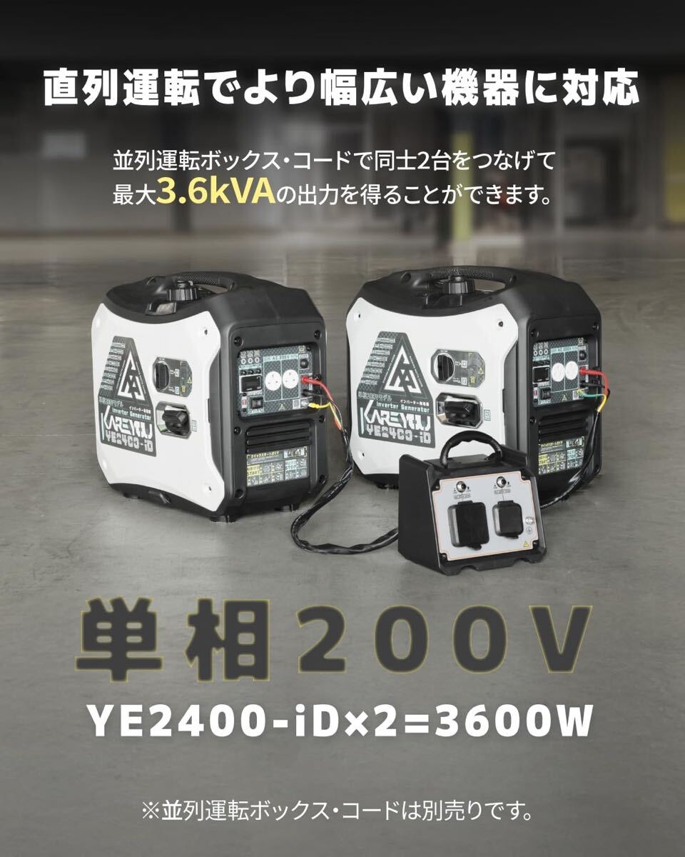 【国土交通省指定の超低騒音型発電機「YE2400-iD」】静音性に優れた設計で、住宅地やキャンプ場など、周囲への騒音が気になる環境でも安心してお使いいただけます。環境配慮型の運転音を実現し、国土交通省の基準を満たす静音性能を誇ります。