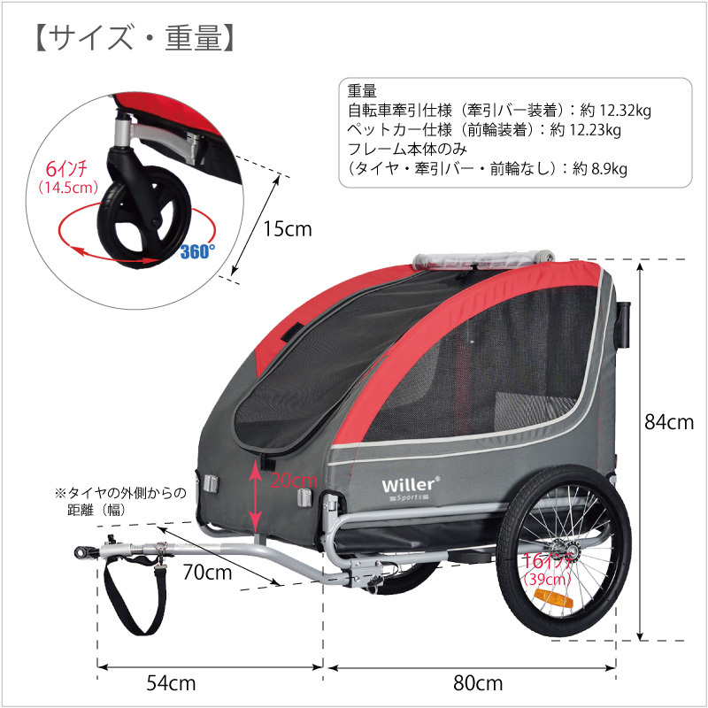 Willer ウィラー サイクルトレーラー ペット用 ペットトレーラー ペットカート 犬用 猫用 カラー:レッド