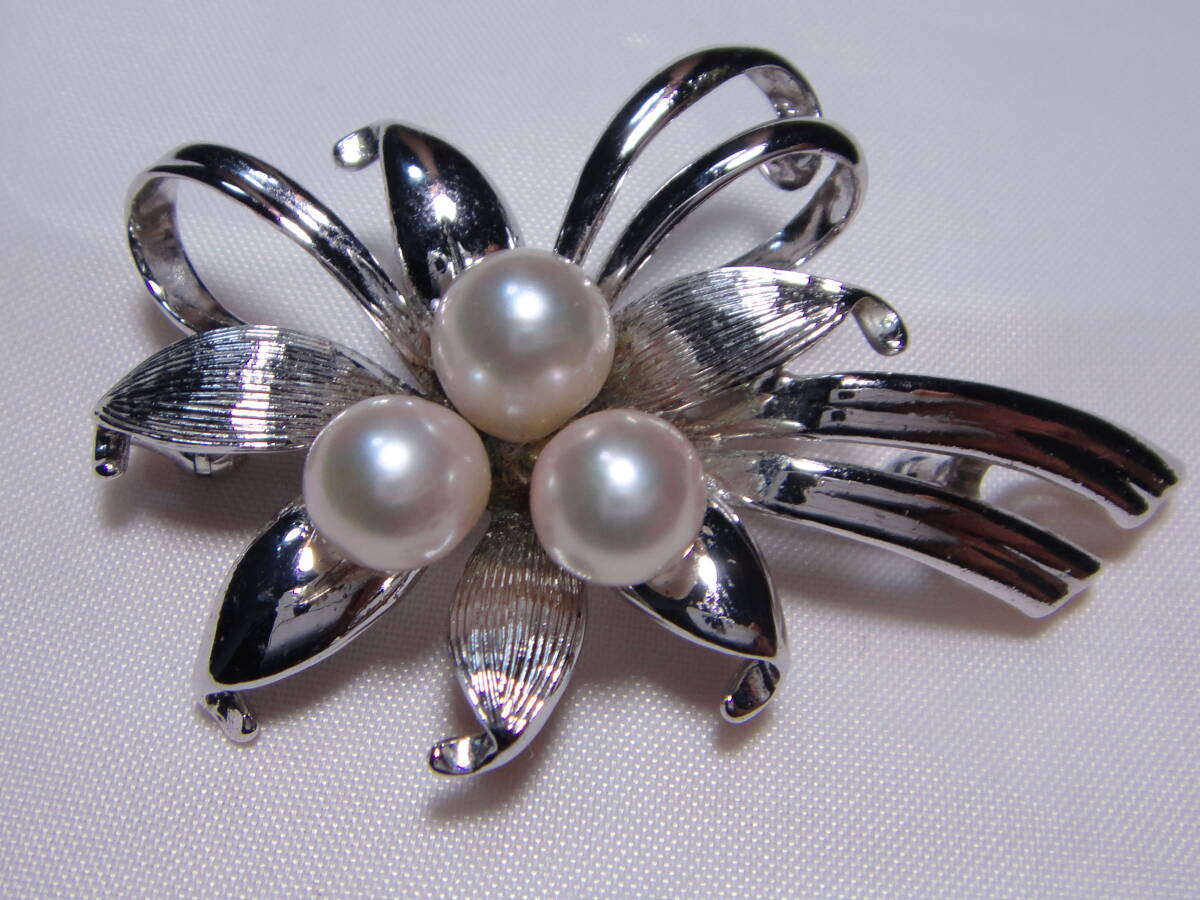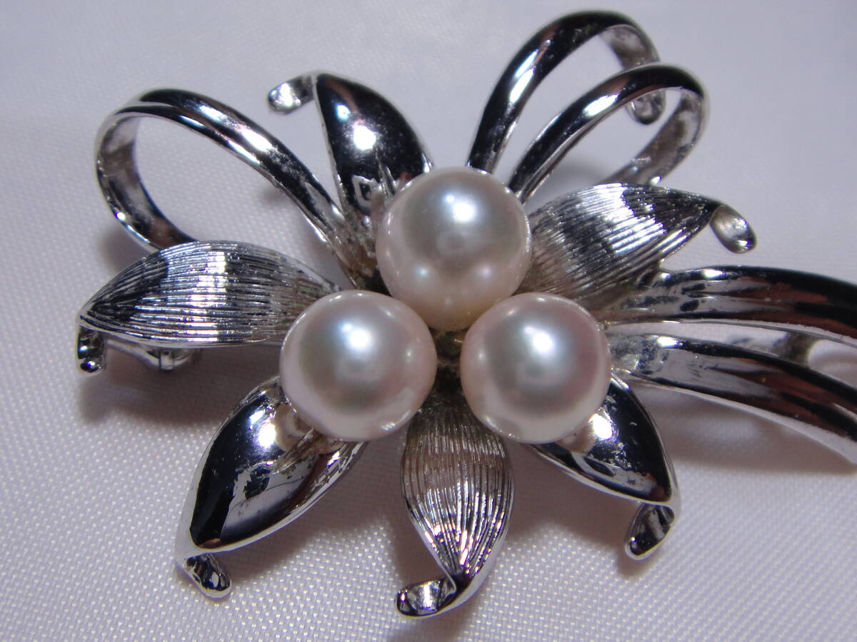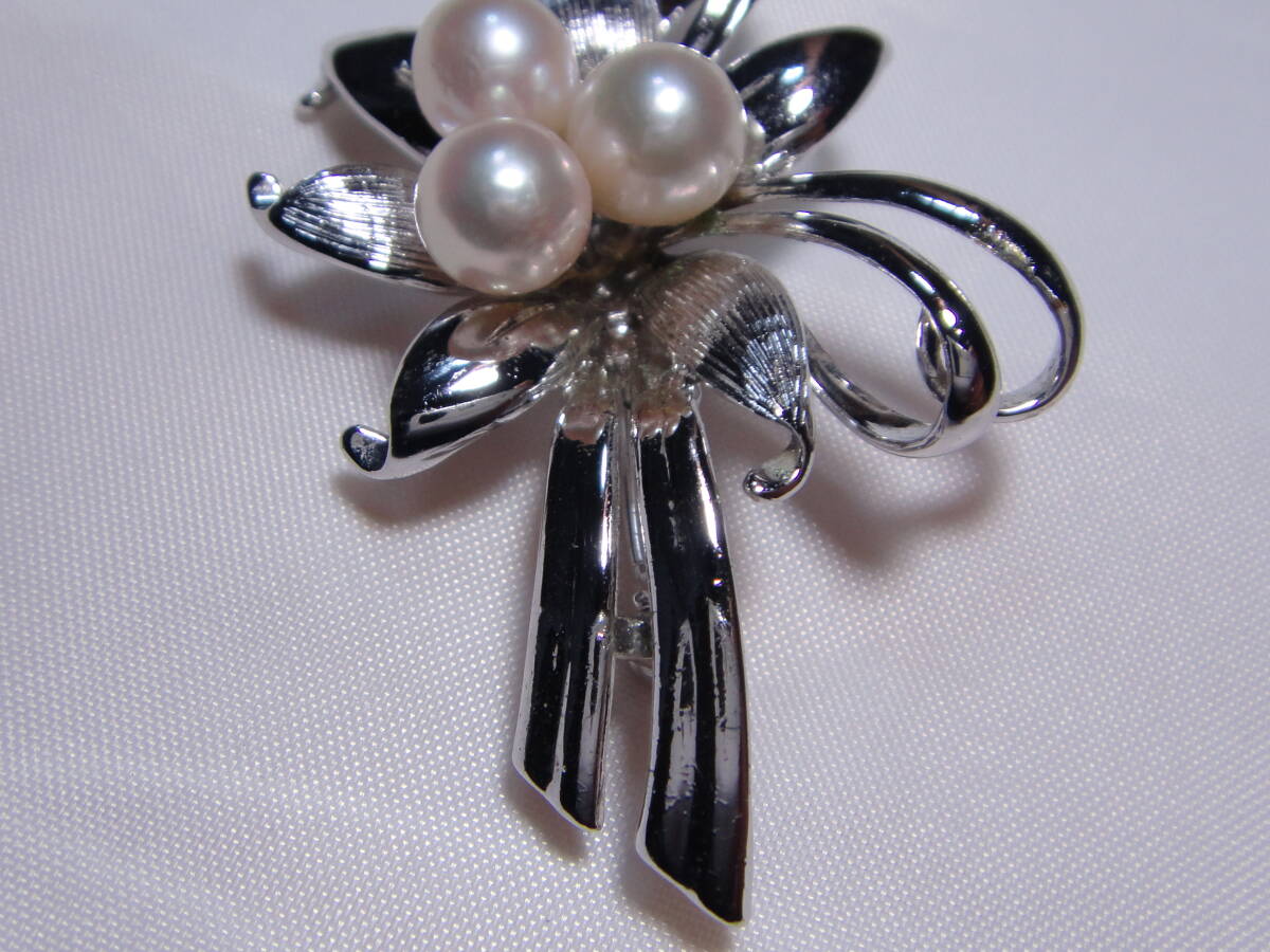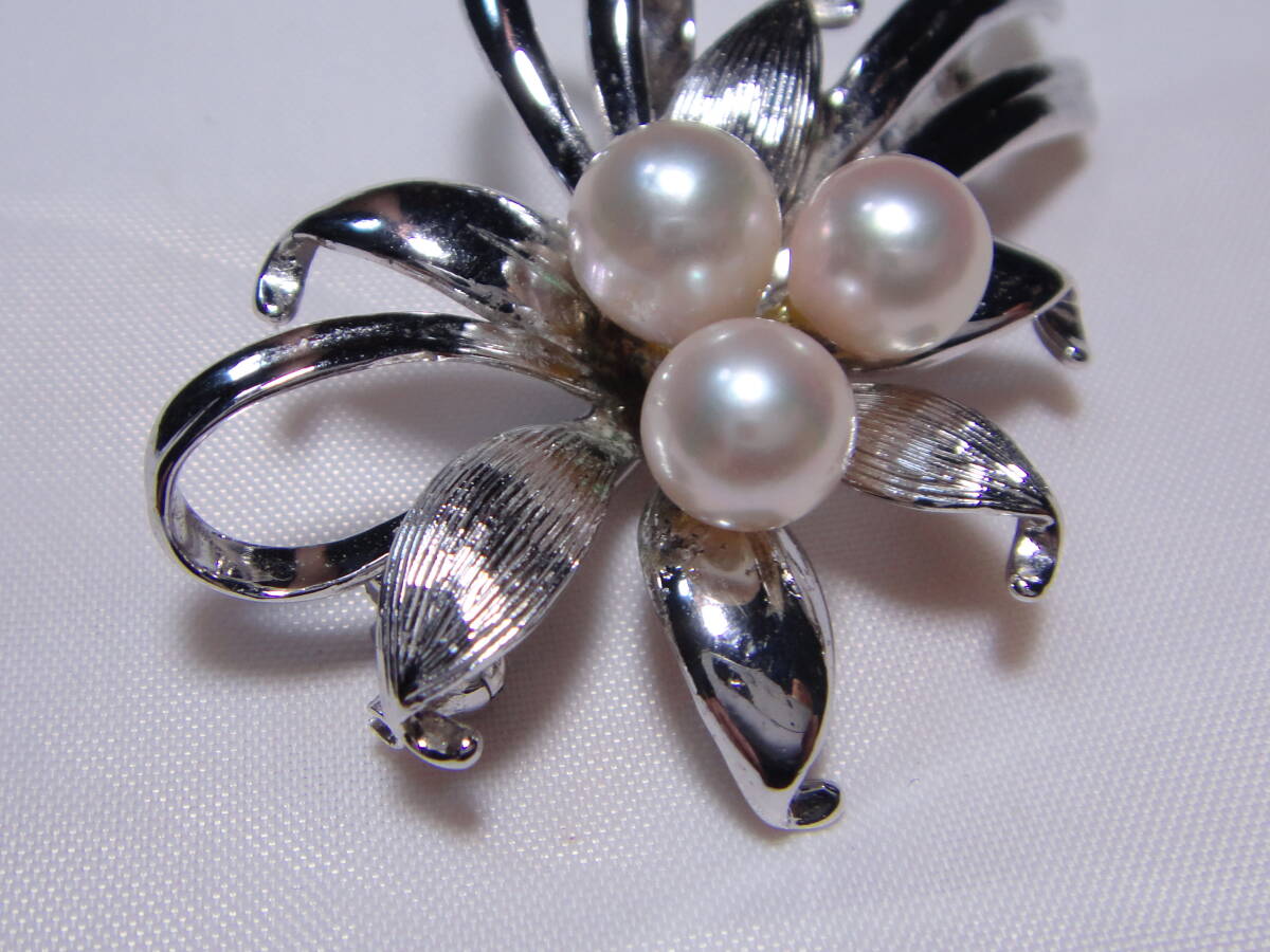 アコヤ真珠 本真珠 本パール ブローチ ネックレストップ 兼用 ツヤテリ良 SILVER刻印 ヴィンテージ D282