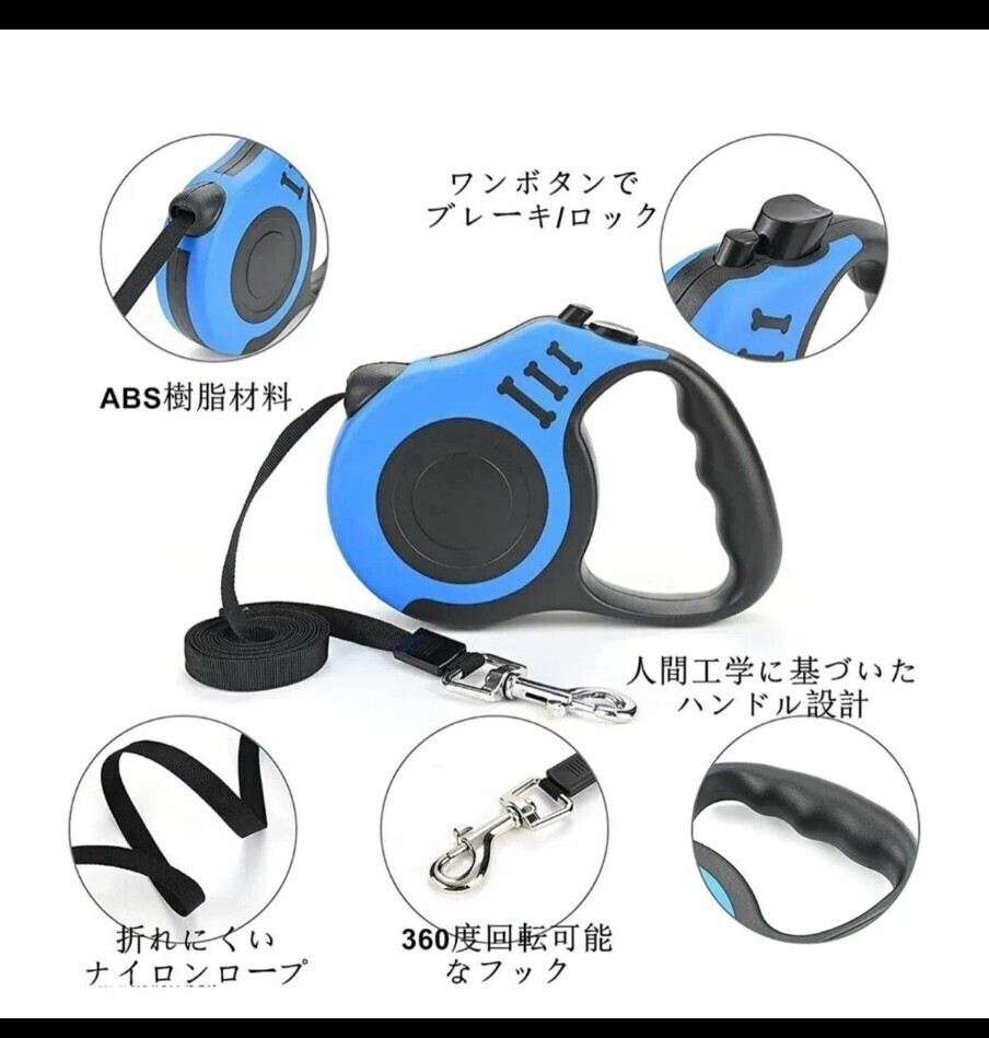 ペット用リード 5m 伸縮リード 巻き取り ハーネス 自動伸縮 犬 猫 散歩