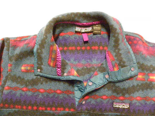 これはアメリカのpatagoniaのプリント地フリースジャケットです。1994年秋モデルで、名前はPrinted Lightweight synchilla snap-Tです。