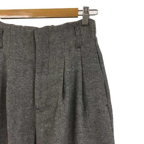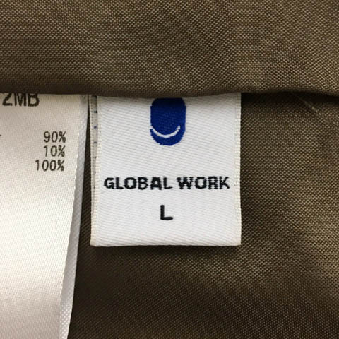 グローバルワーク パンツ ワイド ロング タック ハイウエスト ヘリンボーン ウエストゴム 総柄 L 茶 白 ブラウン ホワイト レディース