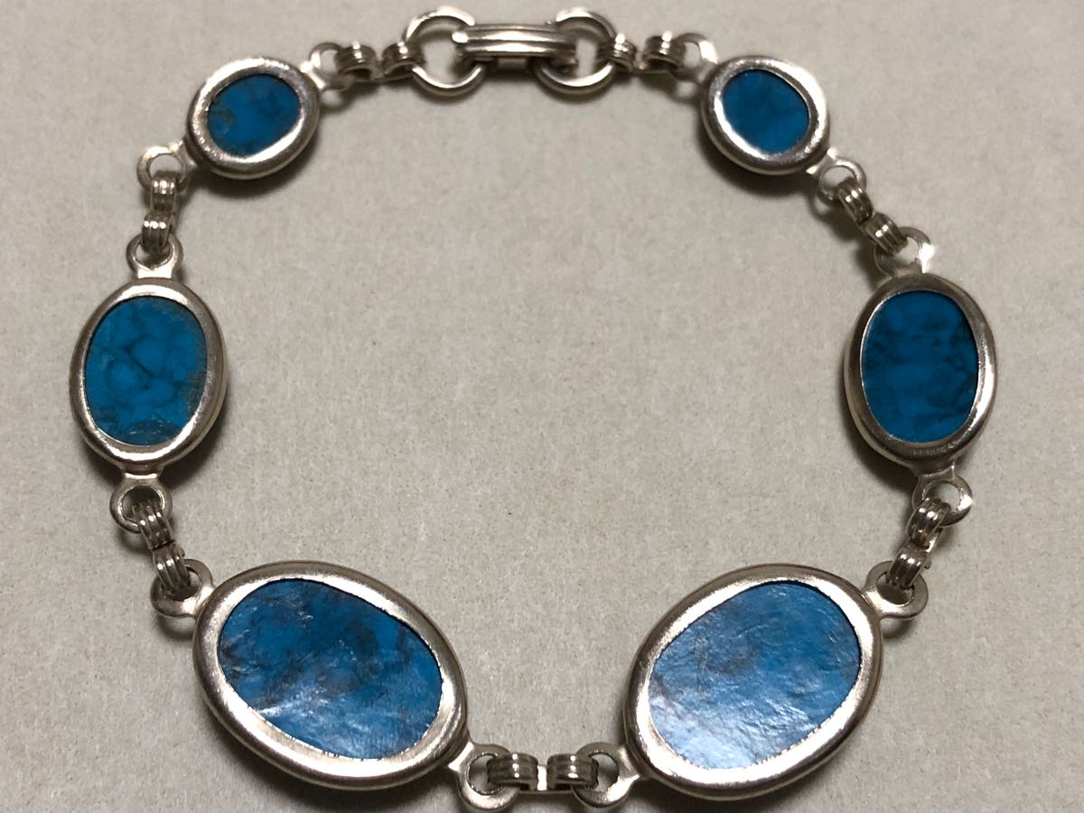 ターコイズ風(樹脂)に仕上げた、デザインブレスレットです。美品です。