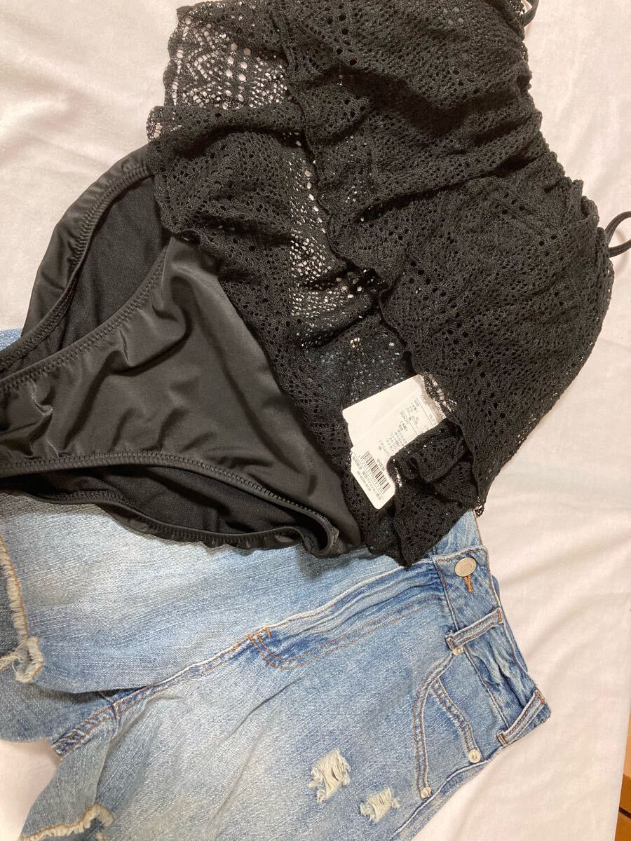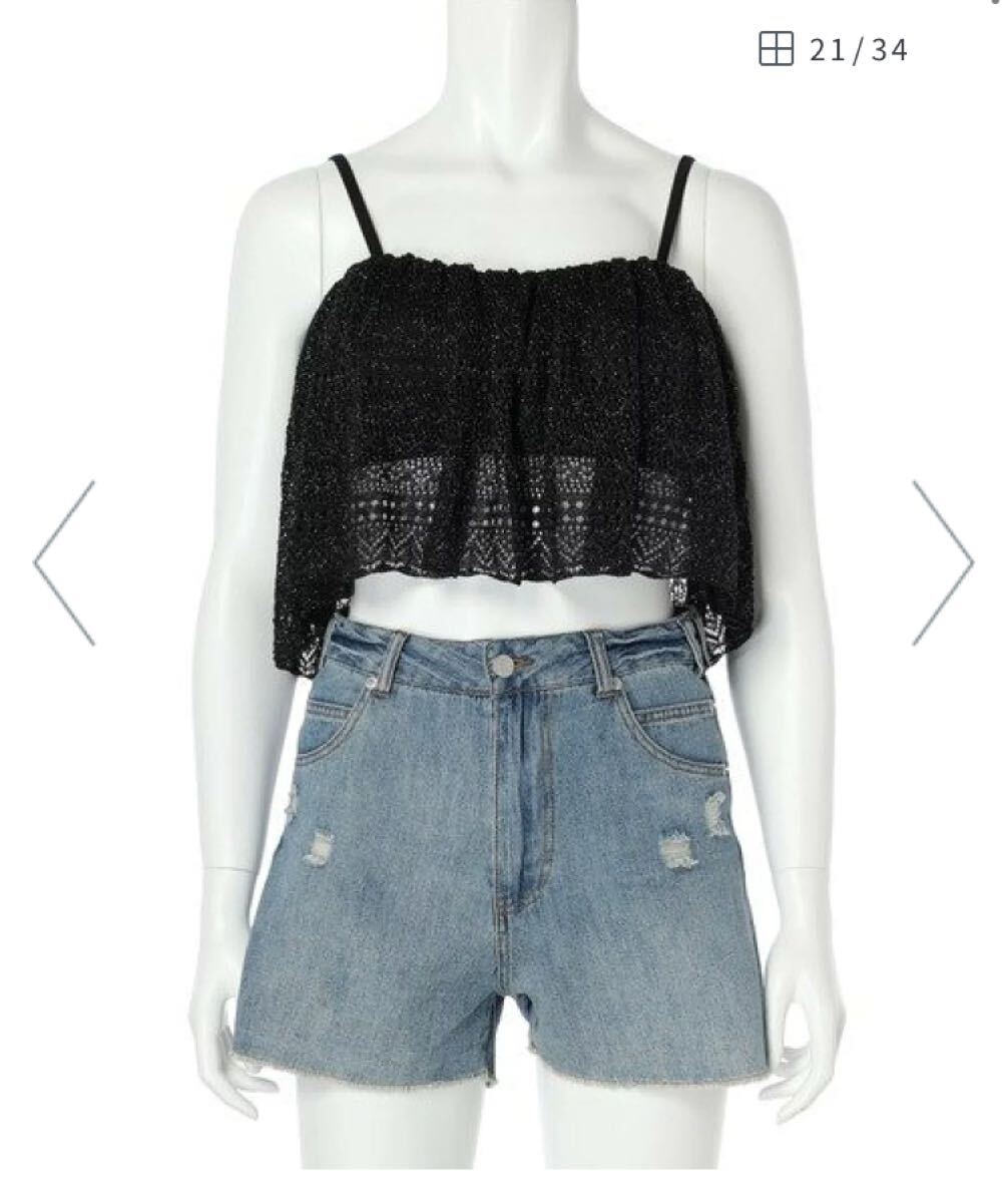 ショーツはブラと合わせた同色のシンプルデザイン。ハイウエストなので脚長効果も期待できます。デニムはダメージ加工を施したヴィンテージなルックで、こなれ感のあるスタイリングも楽しめるアイテムです。