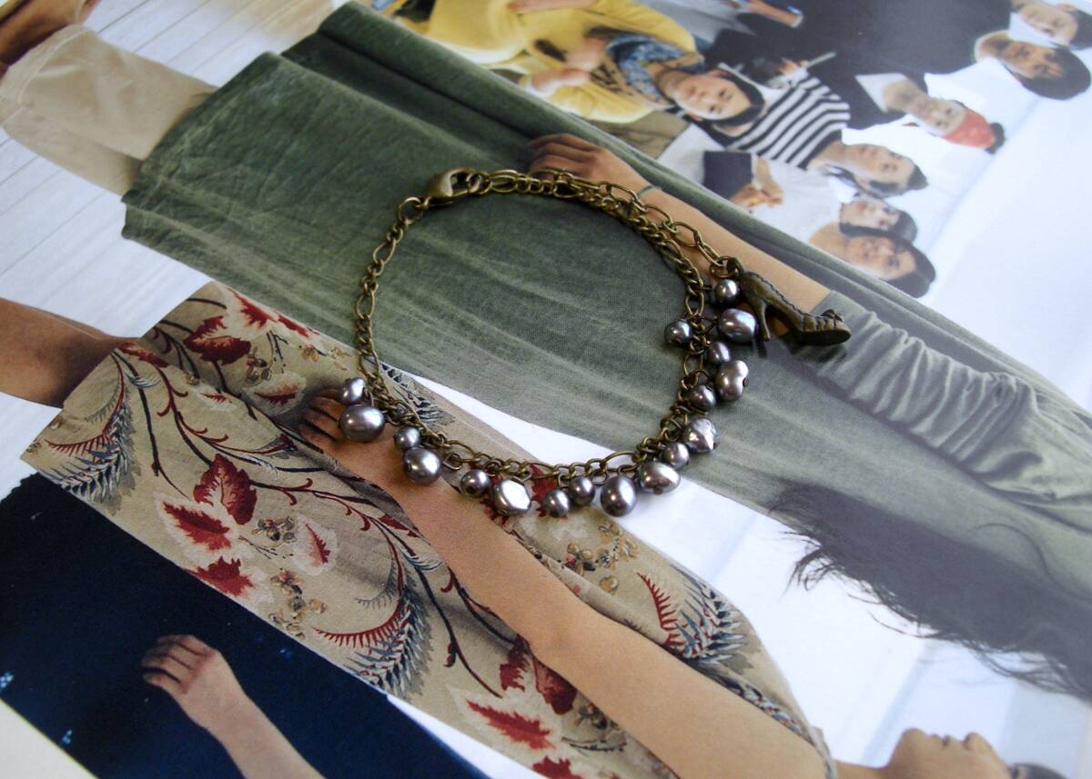 さりげなく着ける楽しみ・・シリーズです♪シックなグレーパール・・淡い色から濃いチャコールグレーまで4ミリから6ミリ位までのポテトや バロックなど小粒の淡水パールを集めて可憐な表情です♪シンプルなデザインなのでカジュアルからロマンチッ ク までいろいろにお楽しみ頂けます♪♪長さは全長22センチ位で調節自由です。お揃いのネックレスやピアスも出品しています♪ハ ンドメイドをご理解頂いてノークレーム、ノーリターンでお願いします