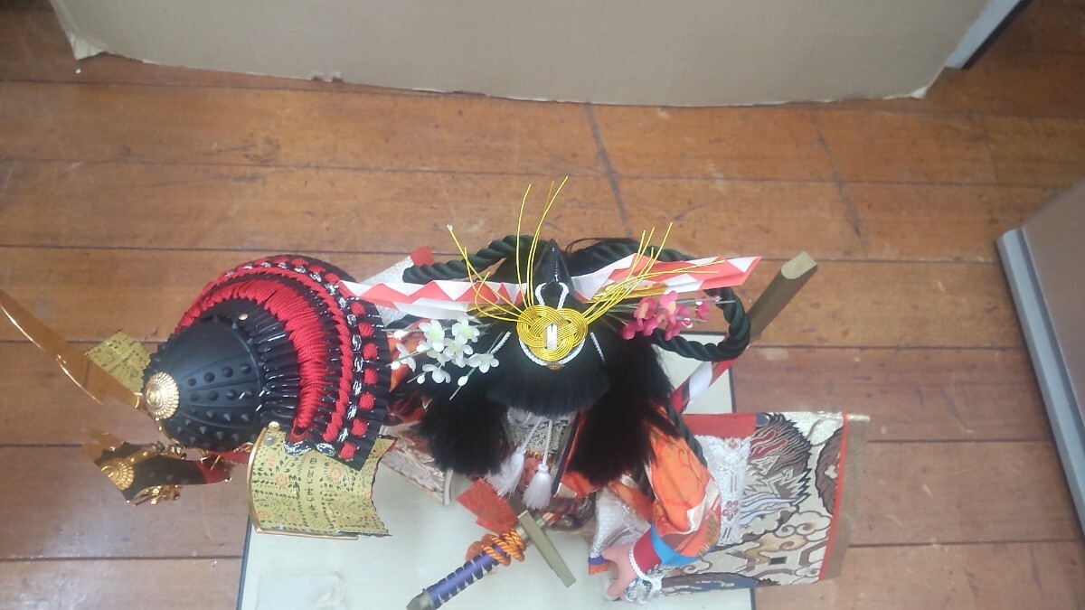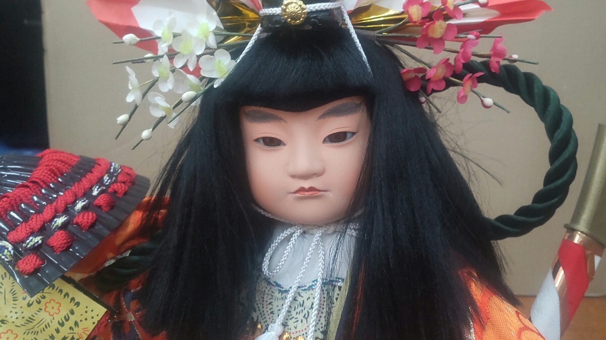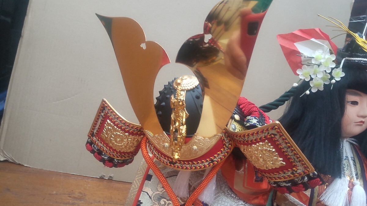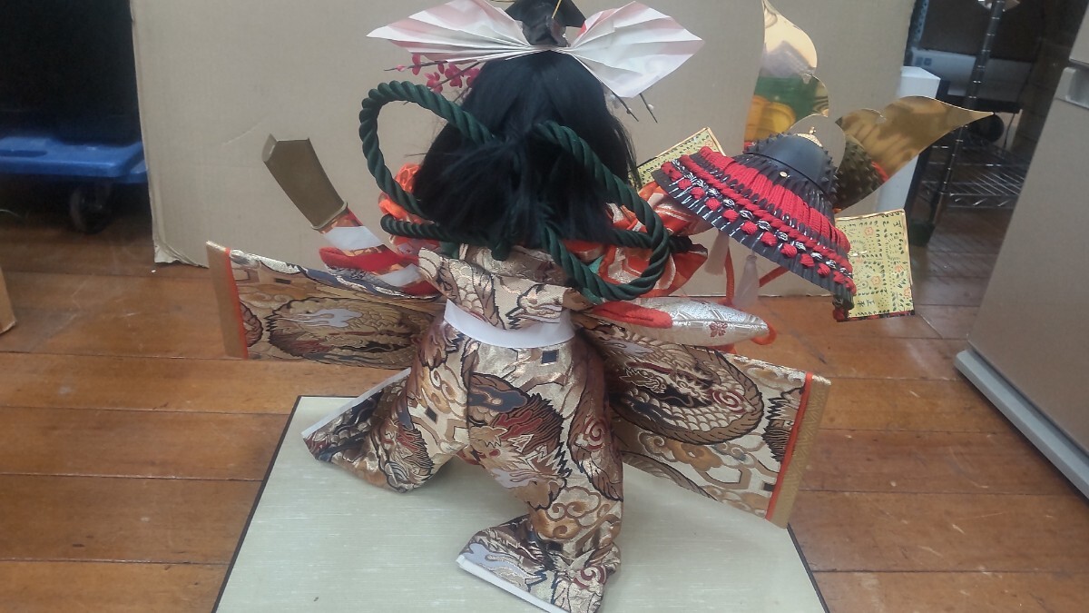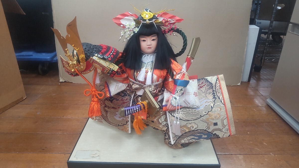 A233 五月人形 作者不明 高さ約50cm/幅約50cm 端午の節句/こどもの日/初陣/武将/甲冑/武士/和人形/昭和レトロ 現状品