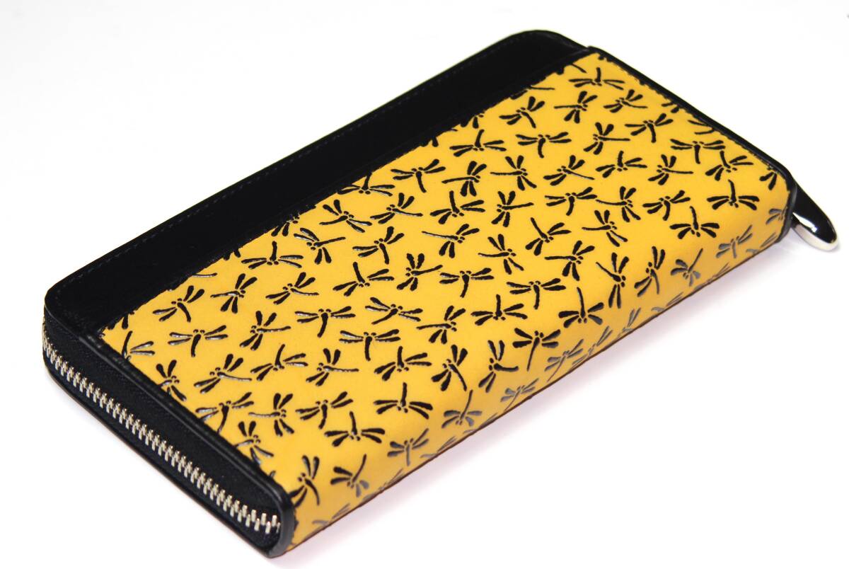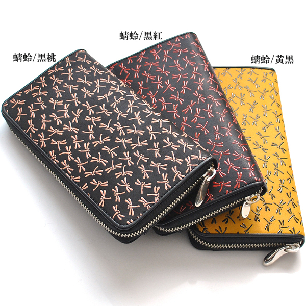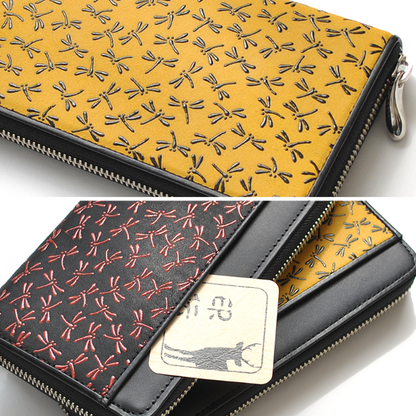 【今月イチオシ限定SALE】【送料込み】【激安】【新品】【税込み】鹿革漆付け加工 とんぼ柄 印伝 日本製 ラウンドロングウォレット YW
