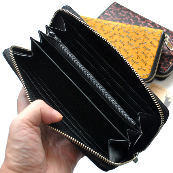 商品名:日本製鹿革印伝とんぼ柄ラウンド長財布