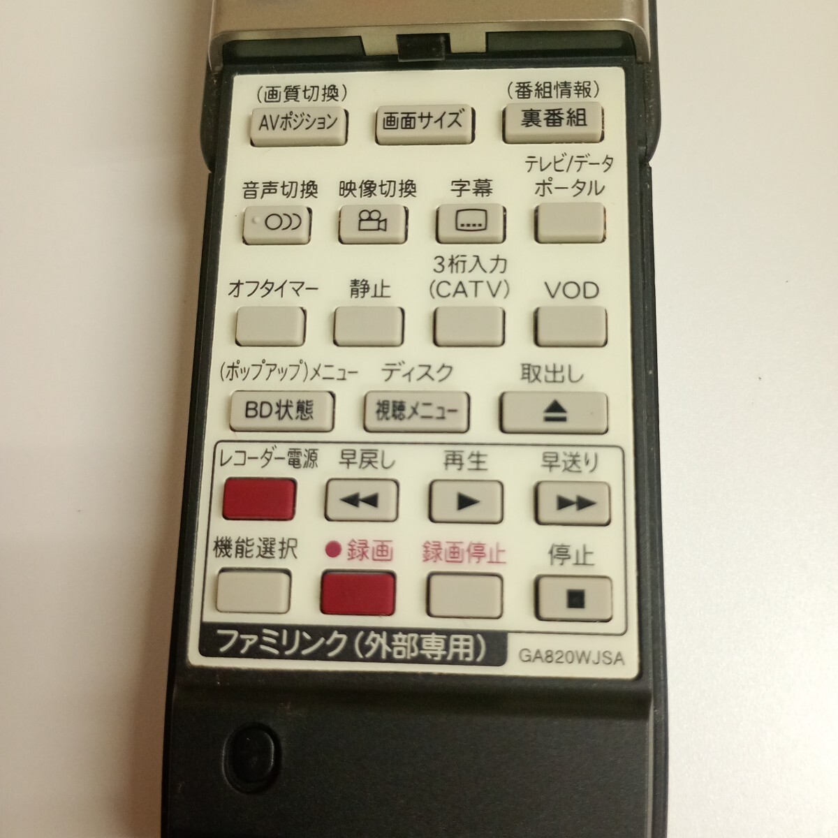 【T-1-29】動作確認済  GA820WJSA テレビ用リモコン電池蓋無し