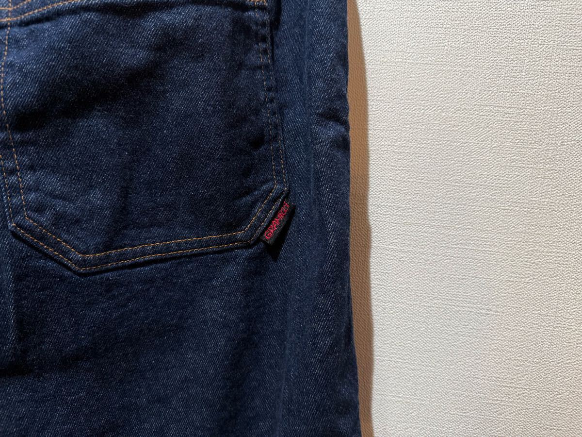 グラミチのデニムパンツです。・ブランドのルーツであるクライミングシーンの機能性を残しつつ、現代のライフスタイルに合わせた細身シルエットが特徴の「NNシリーズ」・裾にかけて細くなるテーパードシルエットの「NN-PANT CROPPED」・伸縮性に優れ、程よいハリコシがある環境配慮のエココットンを使用した12oz.ストレッチデニムを採用・アクティブなシーンにも対応可能な動きやすさ・「NN-PANT」よりレングスが4.0cm短く、裾を折り返さずにくるぶし丈になる設計素材:コットン98% ポリウレタン2%原産国:ベトナムサイズXL股上26cm 股下80cm ウエスト最小84cm ウエスト最大106cm ヒップ115cm 渡り34cm 裾巾21cmインディゴワンウォッシュ定価15400円新品未使用タグ付き