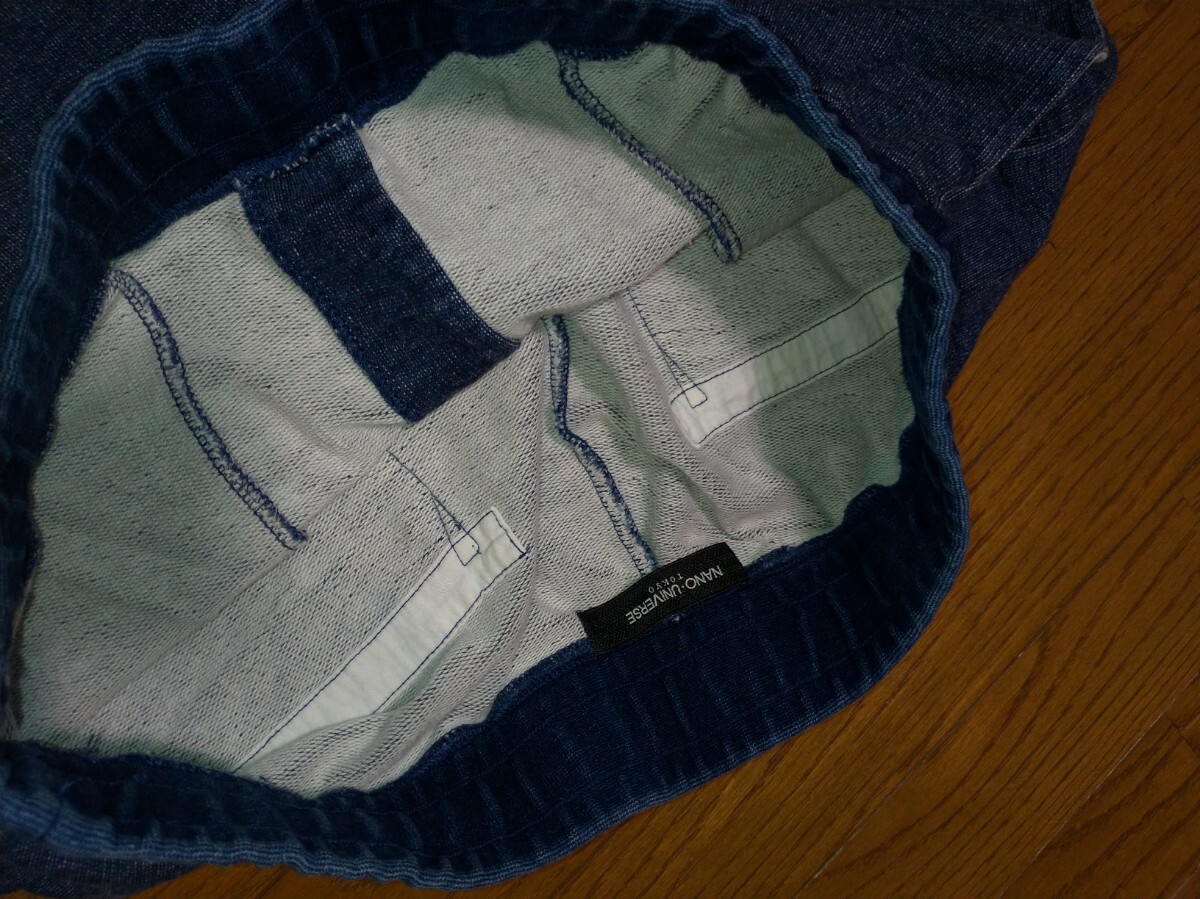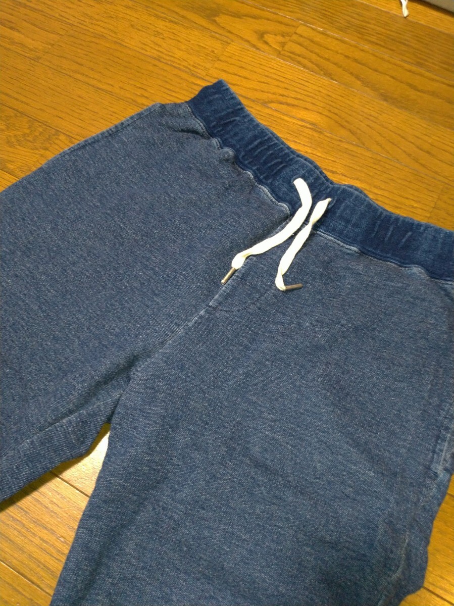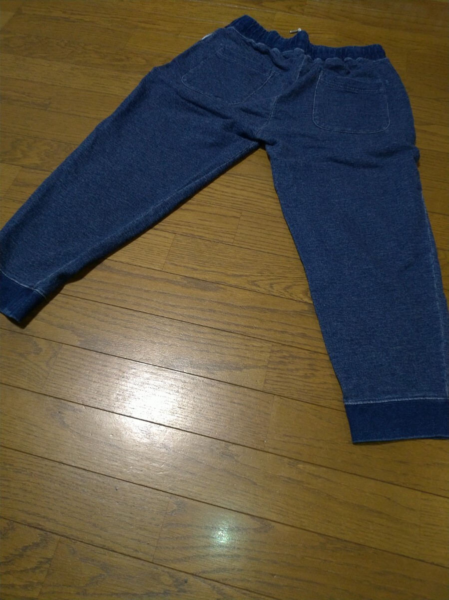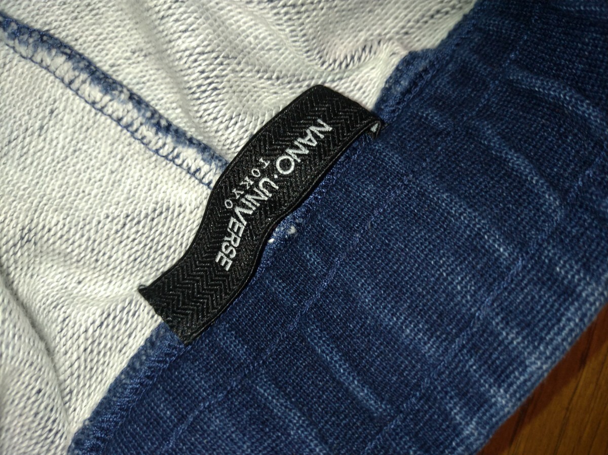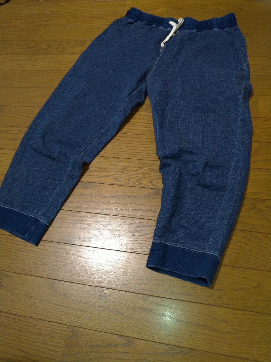 ナノユニバース クロップド ジョガーパンツ スウエットデニムパンツ メンズ サイズL インディゴ USED加工