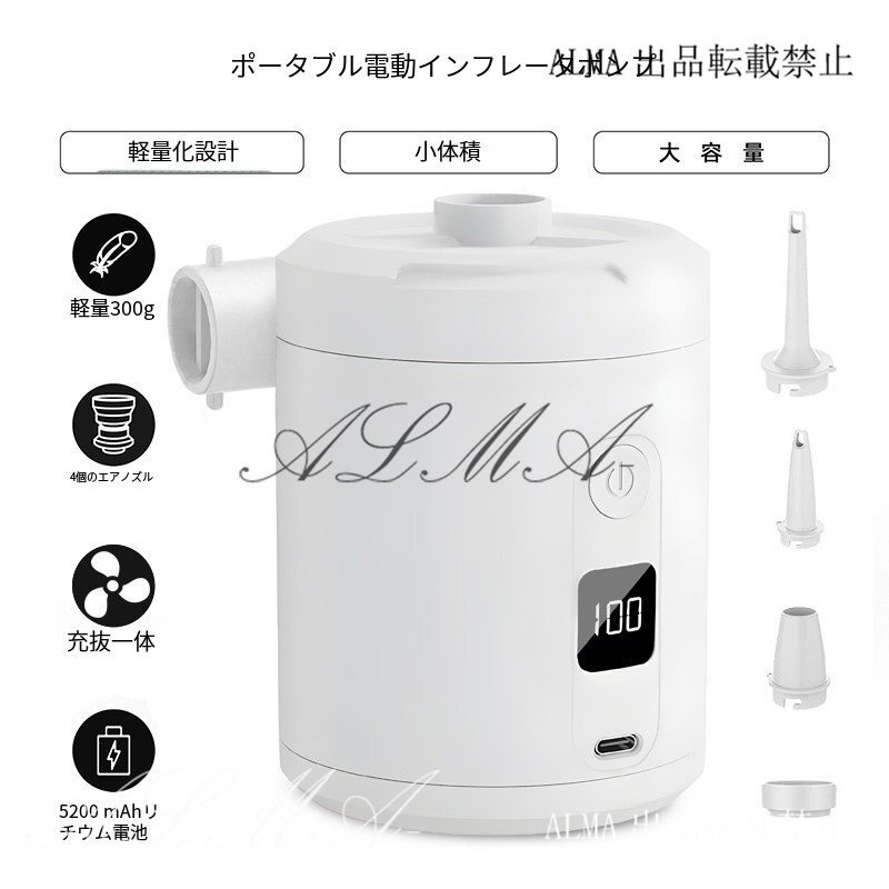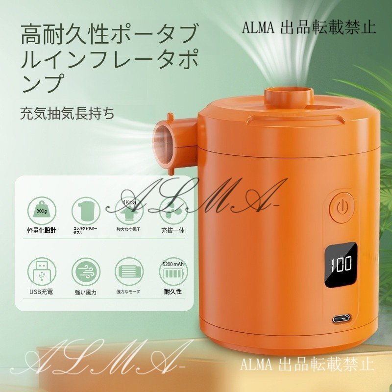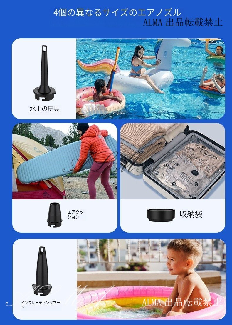デジタル表示 ミニ電動エアポンプ ワイヤレス 小型空気入れ ポータブル式 浮き輪・エアマット対応 屋外用 3色選択