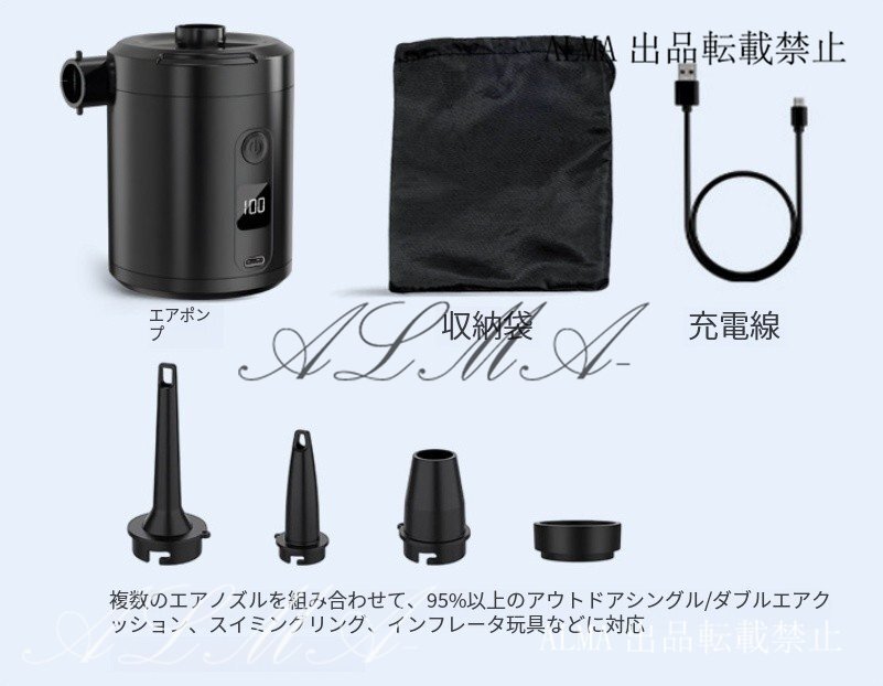 特徴: ワイヤレス・ポータブル・高速空気注入・ミニサイズ