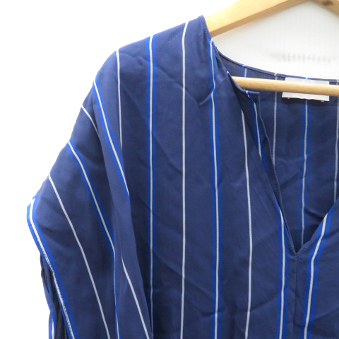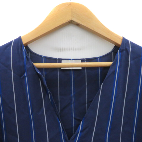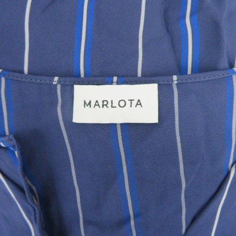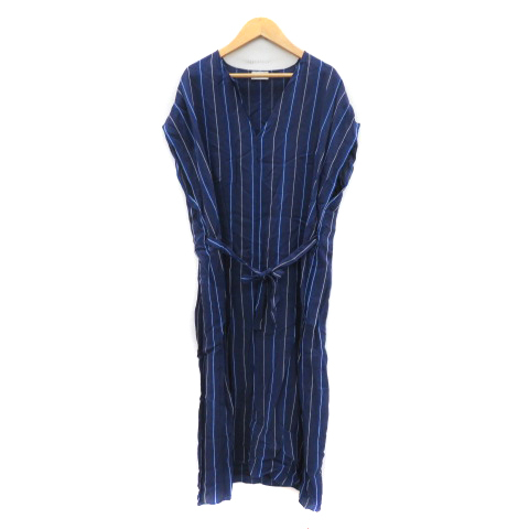 マルロタ MARLOTA ワンピース ロング丈 半袖 スリットネック ウエストリボン ストライプ柄 36 S 紺 ネイビー /YK45 レディース