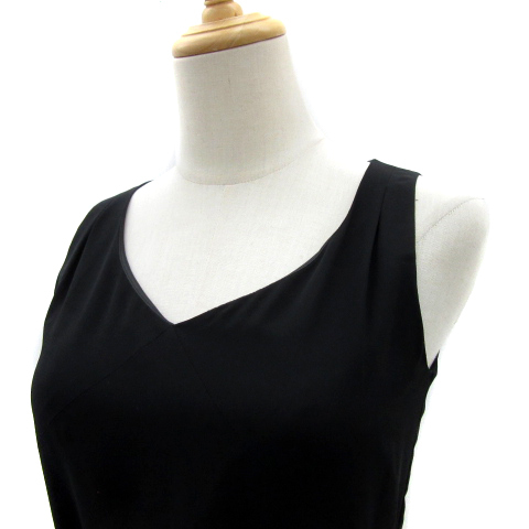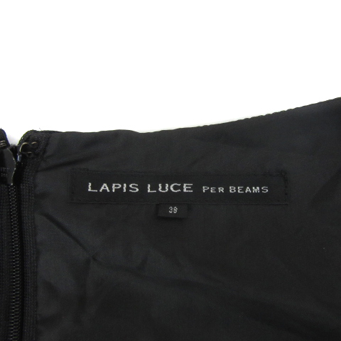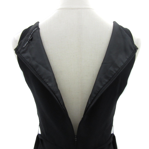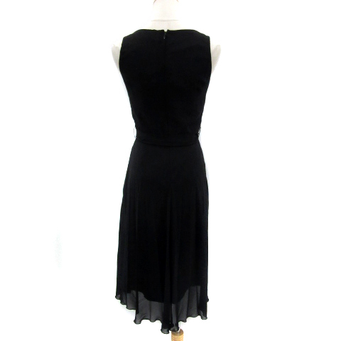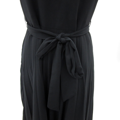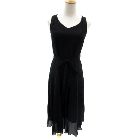 ラピスルーチェパービームス ワンピース ミモレ丈 ノースリーブ Vネック リボンベルト付き 38 M 黒 ブラック /YS12 レディース