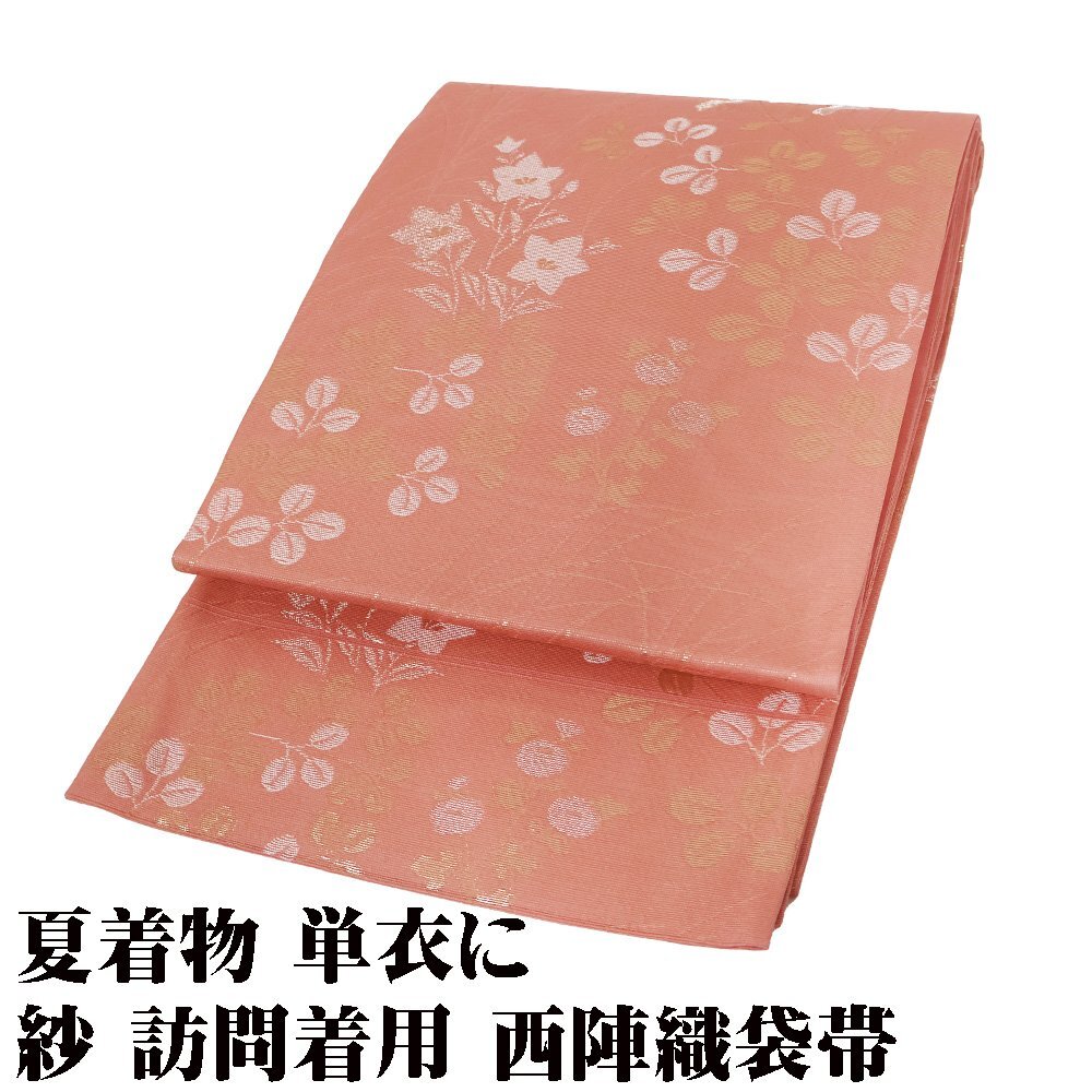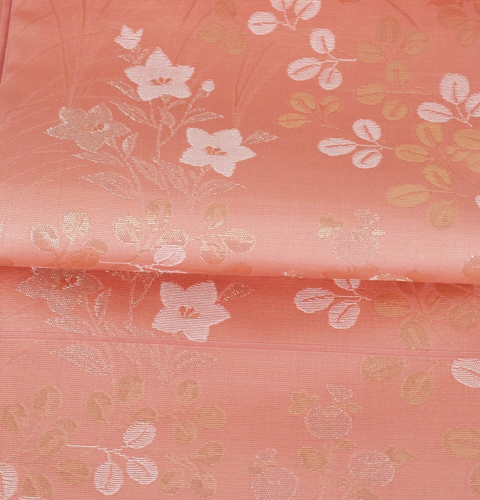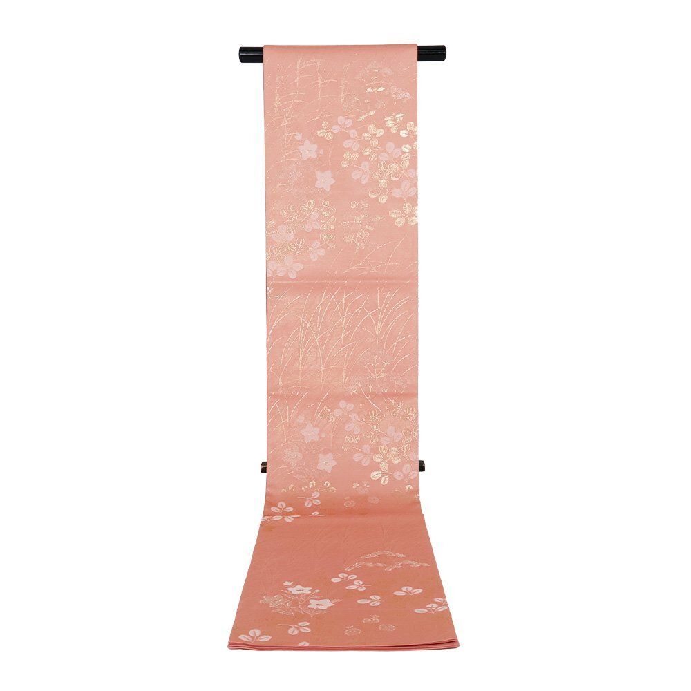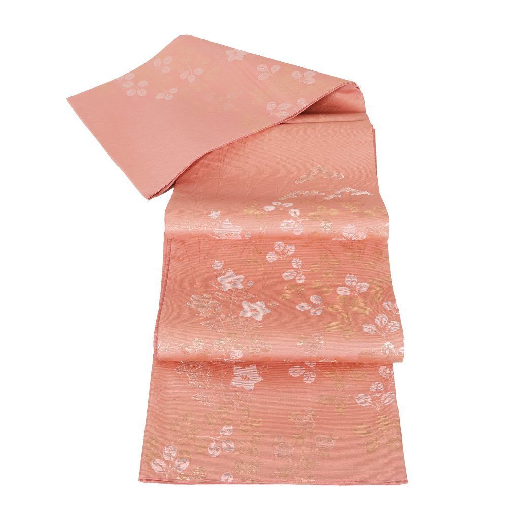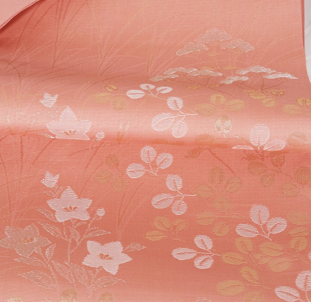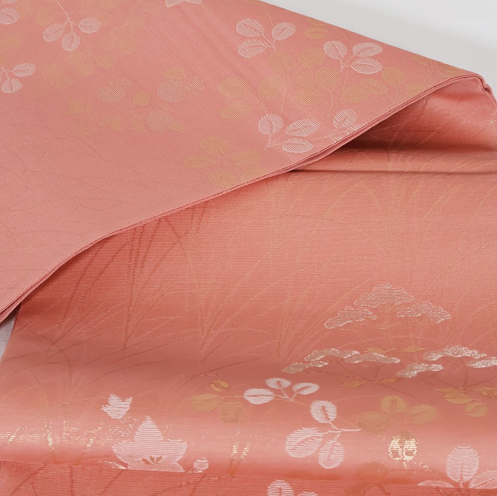 | 紗 西陣織袋帯 濃いピンク地 菊・桔梗・南天・ススキ 未使用品 仕立て上がり | |