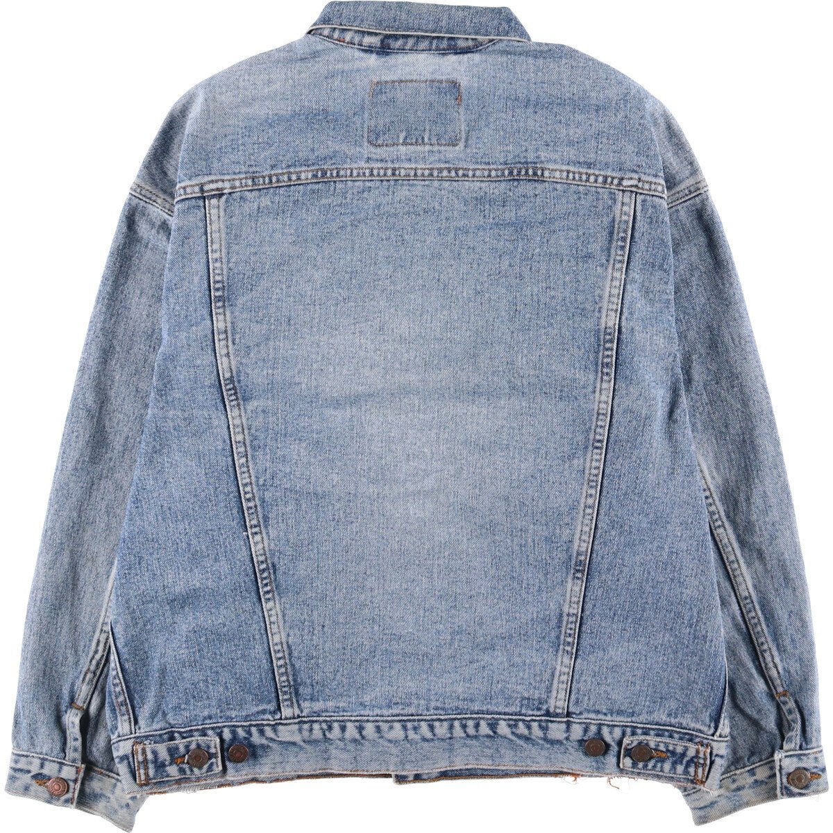 表記サイズ: M 着丈: 63cm 身幅: 61.5cm 肩幅: 57.5cm 袖丈: 51.5cm ![]() | ![]() ランク:C USEDデニムですので使用感、擦れ、色落ちなどございますが、まだまだご愛用していただけます。 古着という事をご理解の上ご注文よろしくお願いします。 【状態追記】 ●全体に擦れ ●前、腹部・両腹部ポケット内・裾・両袖先に汚れ ●前、裾に糸抜け ●後、裾・両腕・両袖先に汚れ ●内側、首周り・裾・両袖先に汚れ ●内側、首周り・両袖先に擦れ、裾に糸抜け |