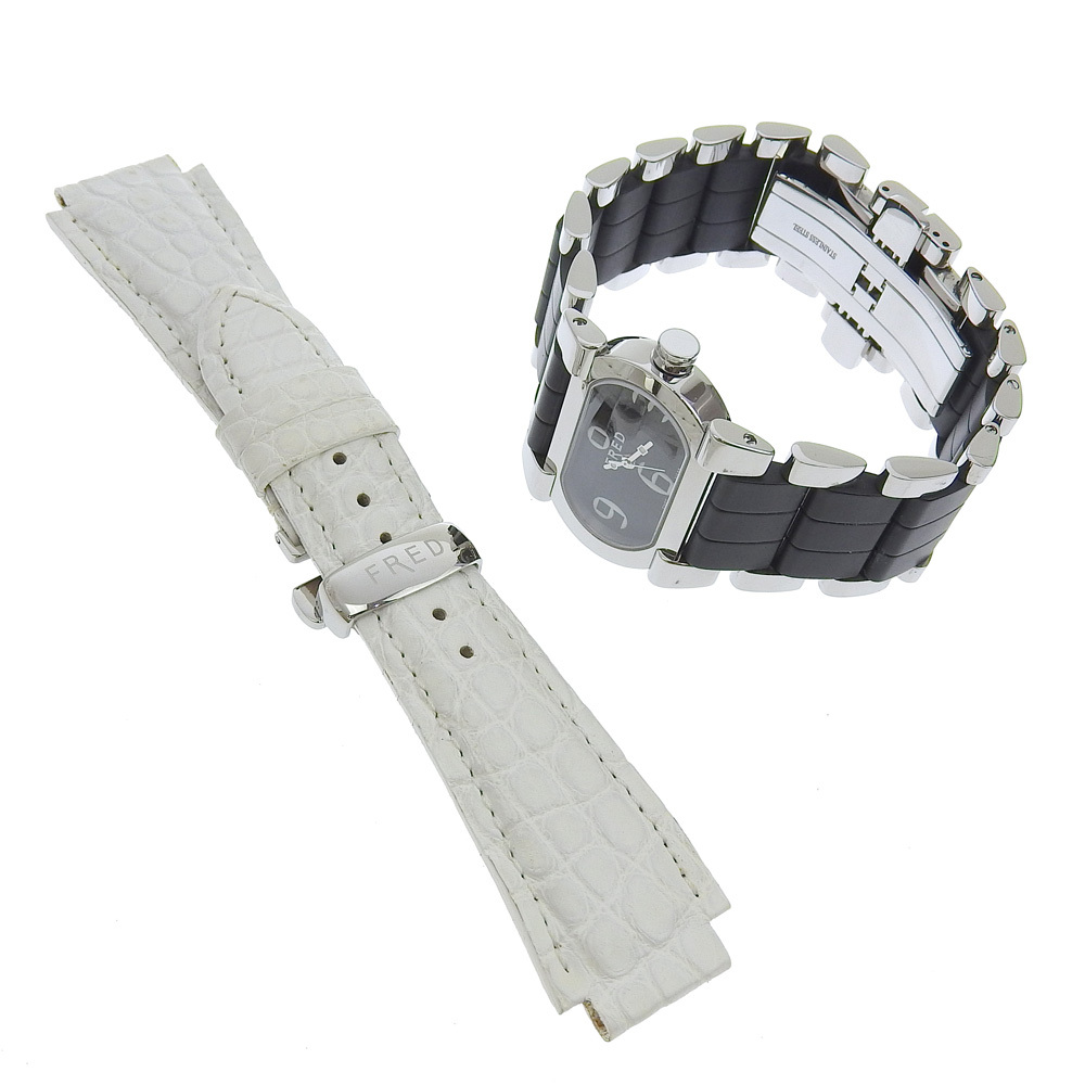 商品説明 | ■管理番号:☆☆I203124081☆☆ ■ブランド:【FRED】フレッド ■商品名:腕時計 ■モデル名:ムーブワン ■型番:FD012110 ■対象:レディース ■シリアル:RA41** ■素材:ステンレススチール ■生産国:スイス ■重量:約75.2g ■付属品:替えベルト、替えベルト:型押しレザー(白) | |